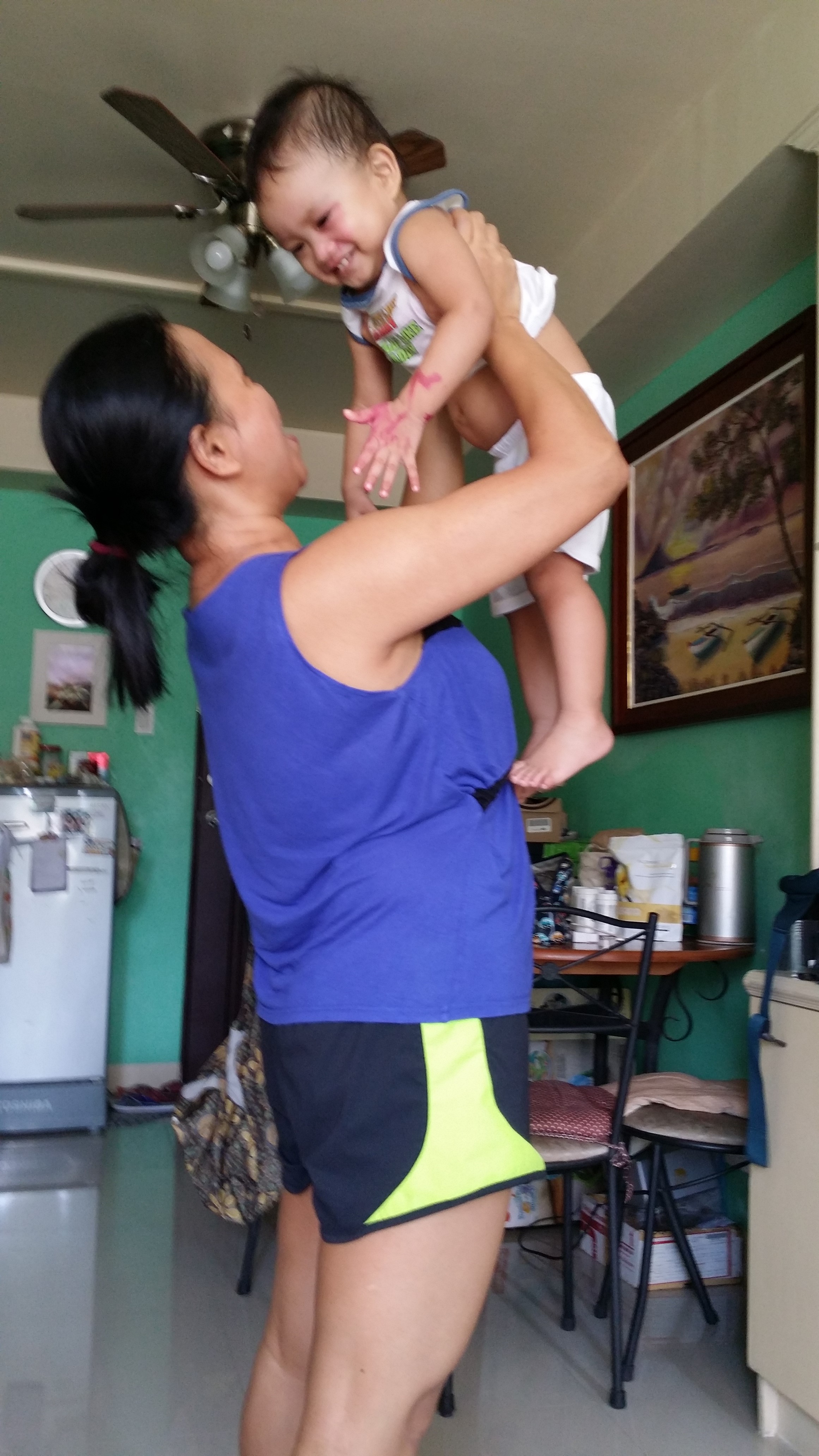 These are just some of the routines I did during Biggest Loser Program. First photo is me while using baby as weight for my arms. Haha