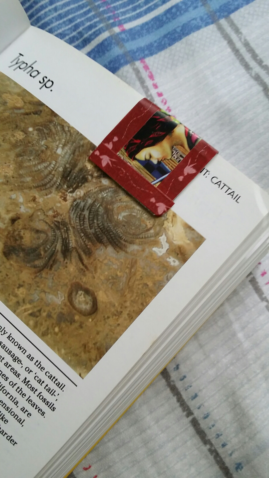 For this bookmark, I used washi tape to frame the glossy picture of a woman I got from our old calendar.