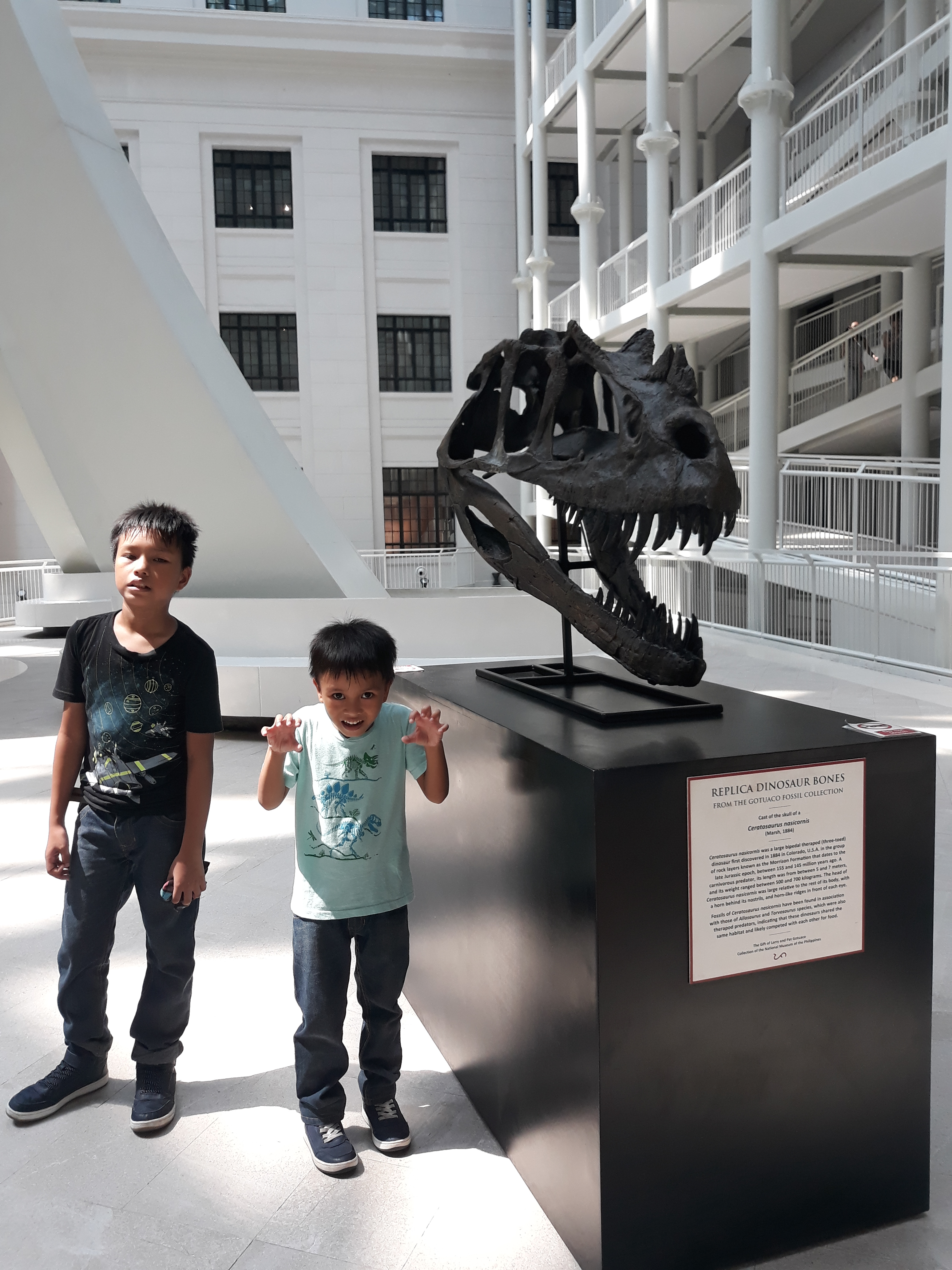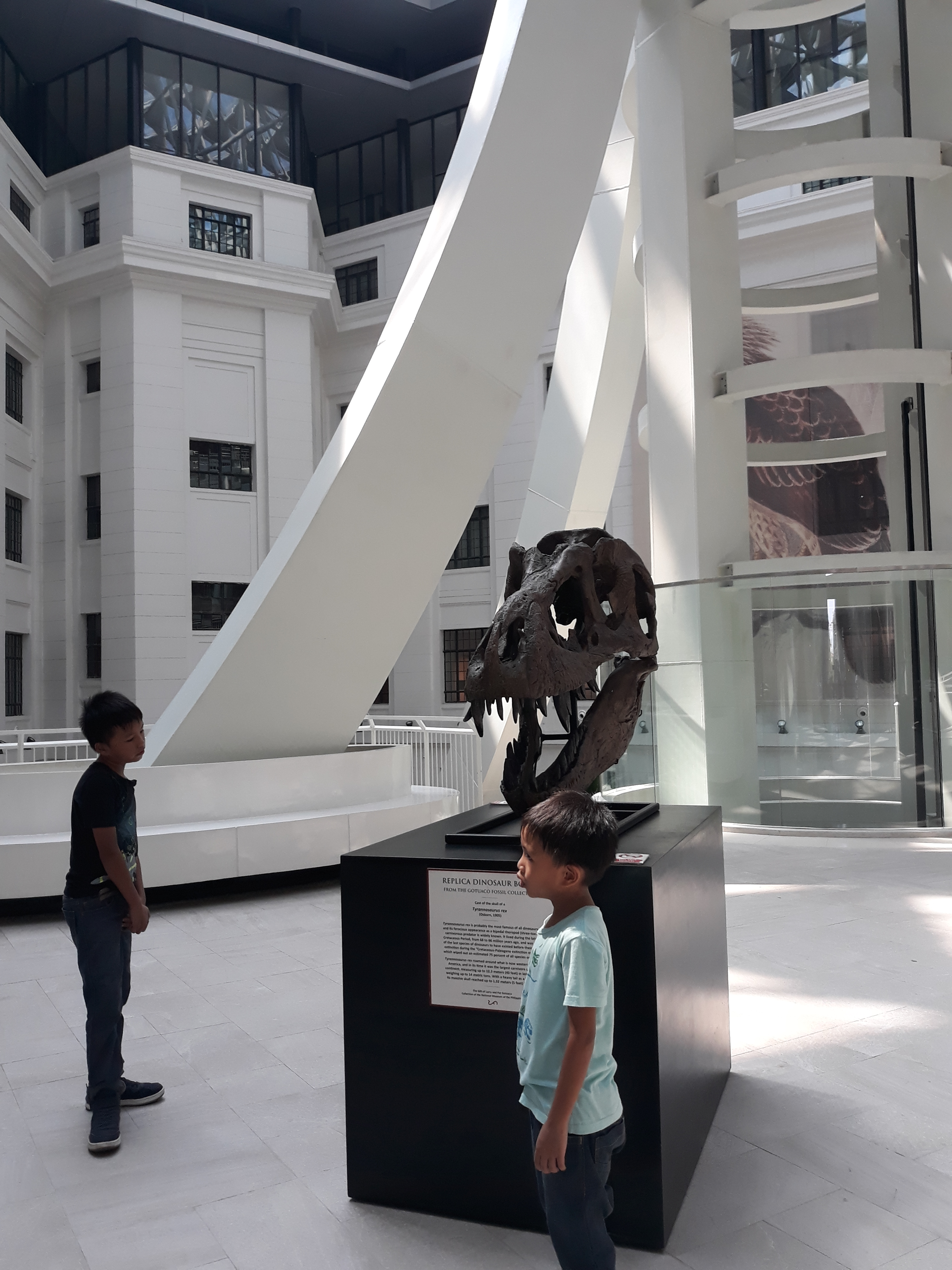 Third time’s a charm for me and my kids for this tour. We have visited the National Museum’s Anthropology and Fine Arts twice before, when my kids were too young to appreciate the visit. Back then my main reason was personal because I didn’t get the chance to visit the museum when I was in college. The National Museum’s Natural History is fairly new and was not ready during our two visits before, thus we prioritized this building for our tour last Sunday, June 23, 2019. In the photos above: a.) the amirugumi version of me went with us to the tour; b.) my kids and hubby by the stairs of the building; c) the Natural History Building’s ceiling; and d) access ramp going to the upper floors.