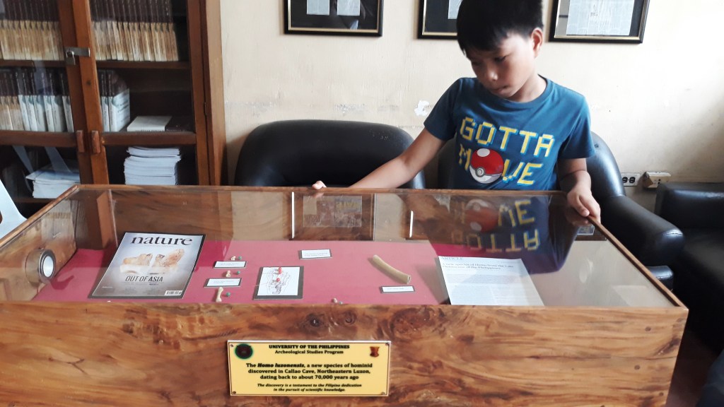 4. For History/Sibika, Ian has started reading Tahanan’s “A Lolong Time Ago” which is a series of stories that discuss the origin of the earth, the Philippines, and prehistoric events. It was very timely too because we learned that the remains of 67,000 years old Homo Luzonensis is currently on display at the UP Archaeology so we paid him a visit. We also met Leni, the department’s pet cat and even bought the book, The Archaeology of Central Philippines, for our bed time reading (mine mostly!).