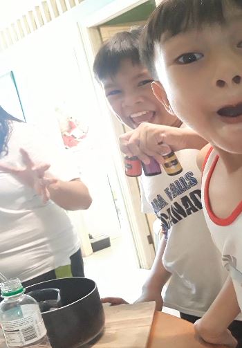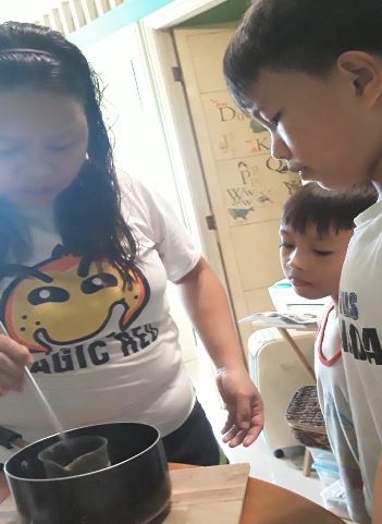 3. For Science, I taught Gugu about gravity and other types of force, phase change in matter, motions, kinetic and potential energy, light, and did a few activities. For phase change in matter, we made balms to demonstrate how a solid matter can turn into liquid then back to solid due to temperature change, photos below: