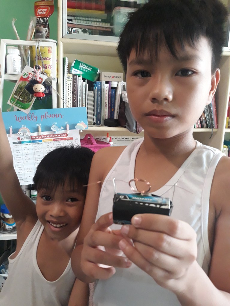 2. We created a simple rotor using copper wire, magnet, battery and safety pins as our experiment to demonstrate electricity flow for their Science experiment.