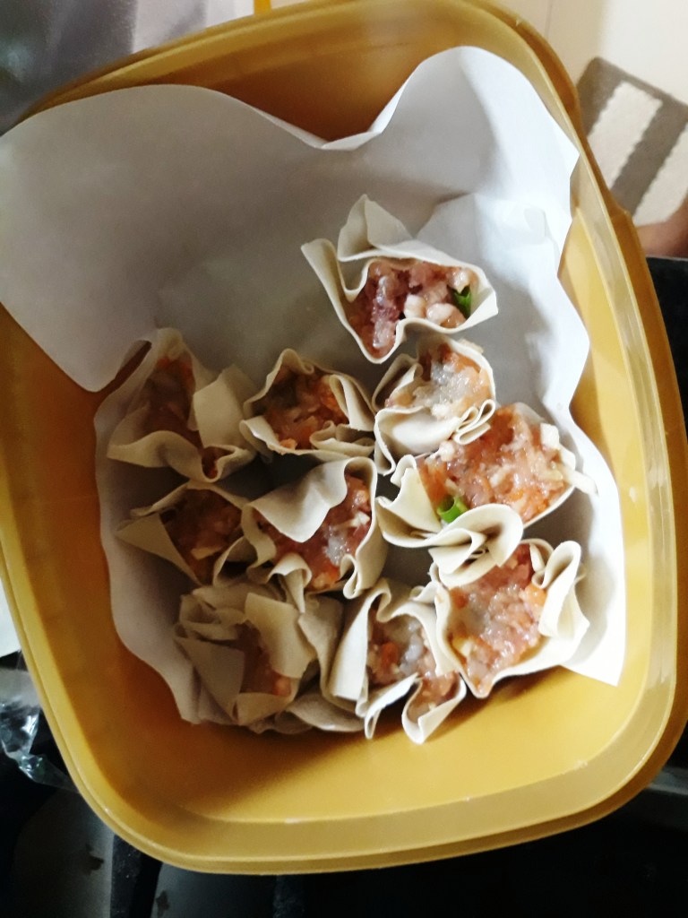 Nereus also learned how to prepare their favorite pork shrimp siomai because the ones in the grocery are full of extenders and not as tasty as the ones I make. I also like our siomai to be fiber-rich so we a add a lot of jicama, spring onions, and carrots.