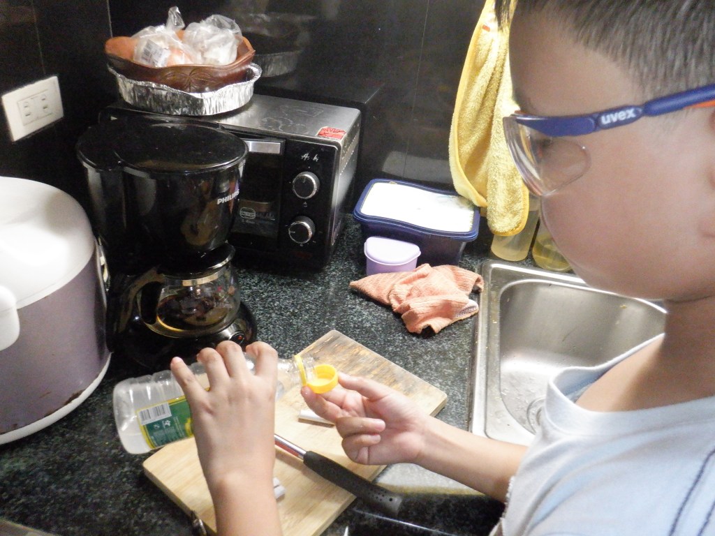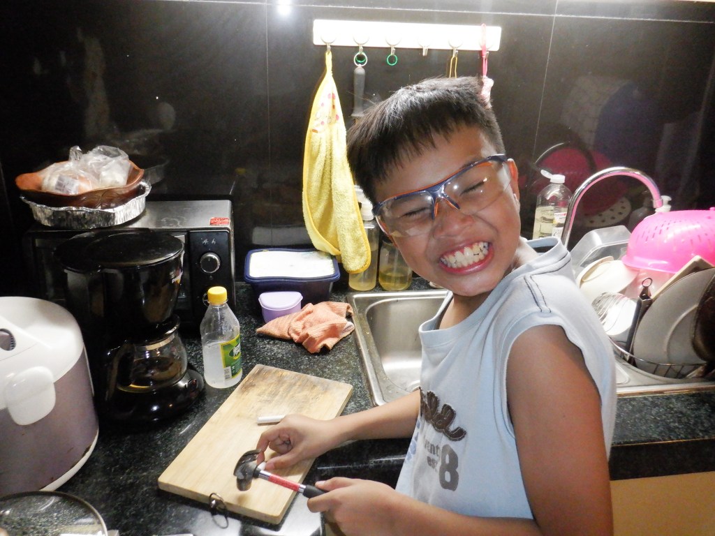 Nereus also had an experiment about the difference between physical and chemical weathering using chalk pieces, hammer, and vinegar. I’ve also pointed out coastal erosion to him during out visit in Mongpong Island which we have observed in places around the island.