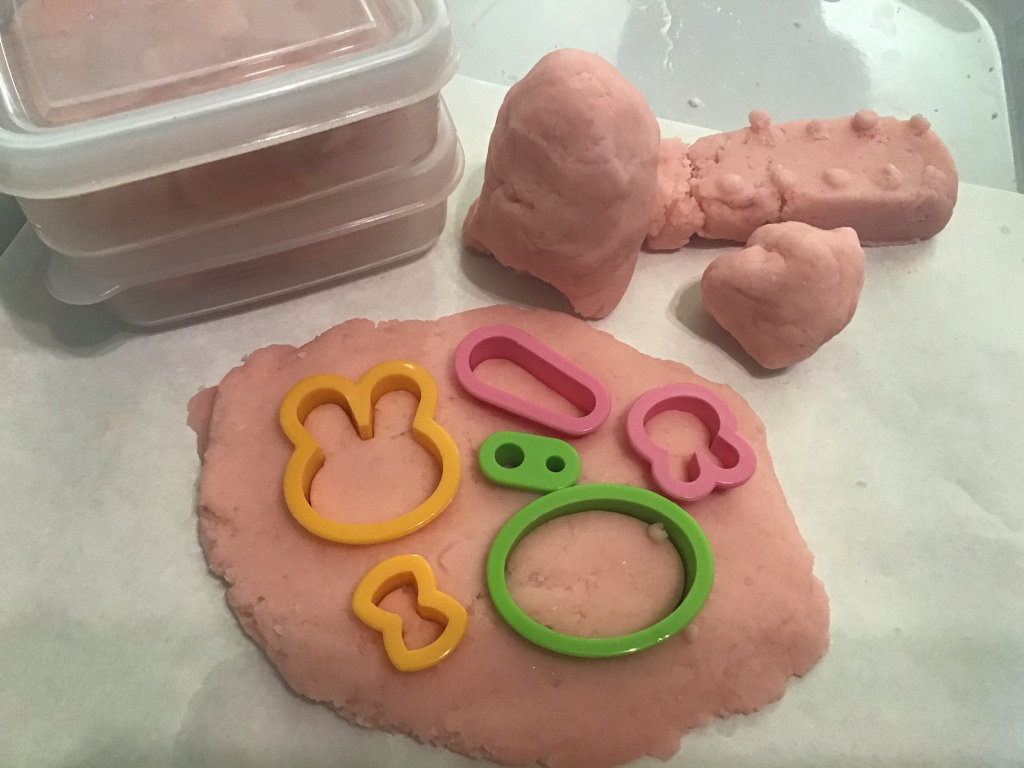 For their art and science module, we made our own playdough using flour, cream of tartar, salt, food color, water and essential oil.