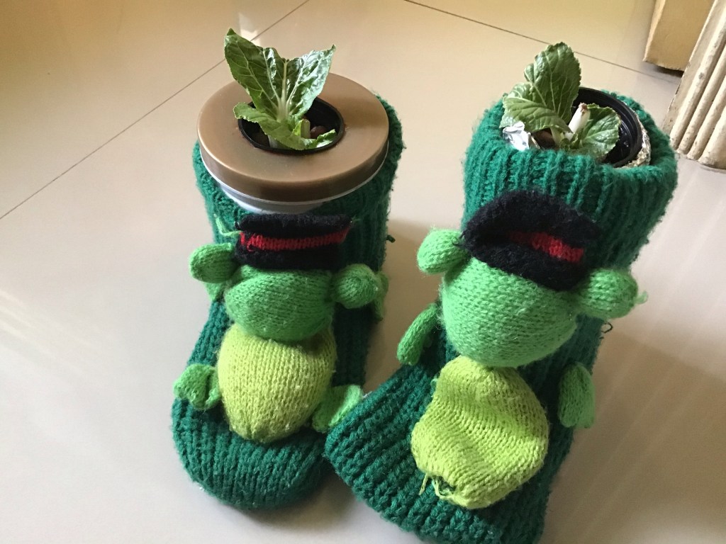 When my acrylic spray had ran out, I wrapped my glass and plastic jars with aluminum foil or duct tape and then wrapped with my old socks for aesthetic purpose. Below are photos of the containers I’ve used for my Kratky.