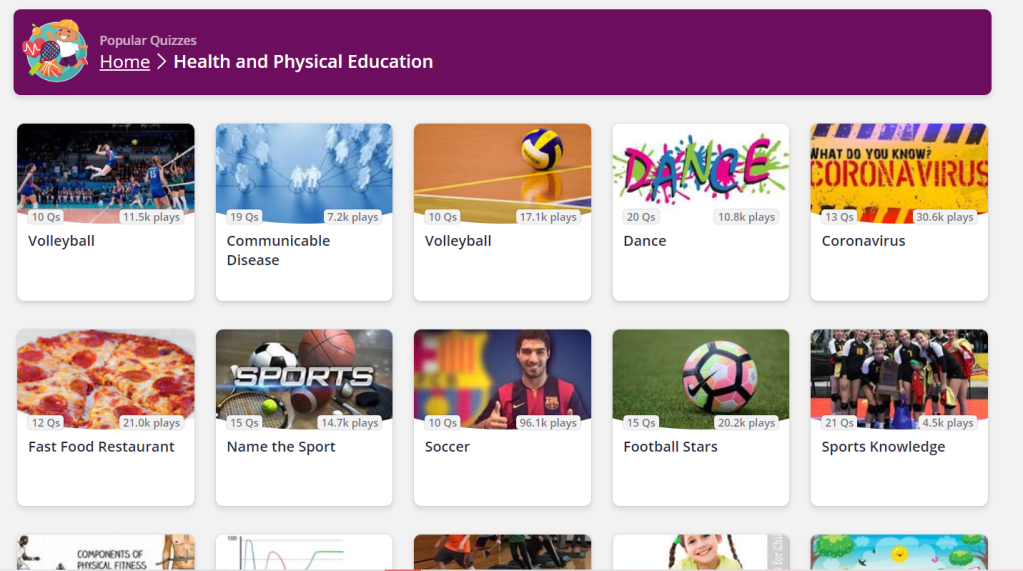 Wouldn’t you like to have quizzes made ready for you for most topics and subjects? Just like GenerationGenius, this website came highly recommended from one of the teachers at Peniel. The website offers online quizzes, engaging contents and games for Math, English Language and Arts, Social Studies, World Languages, Science, Computer Science and Skills, Career and Technical Education, Creative Arts, and guess what, Health and Physical Education! With COVID-19 still around us, it can be bit challenging to teach PE to kids now. There’s Youtube videos of course but still, I’m happy that a free education platform like Quizizz offers some lessons and activities to help me teach PE to my kids.