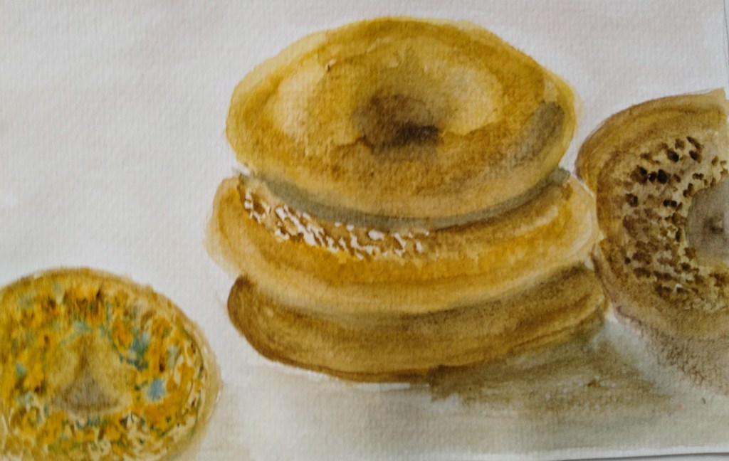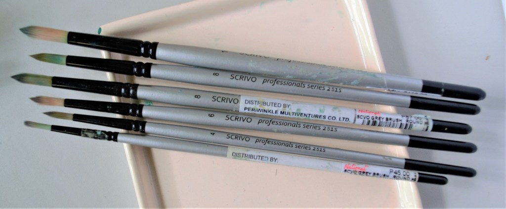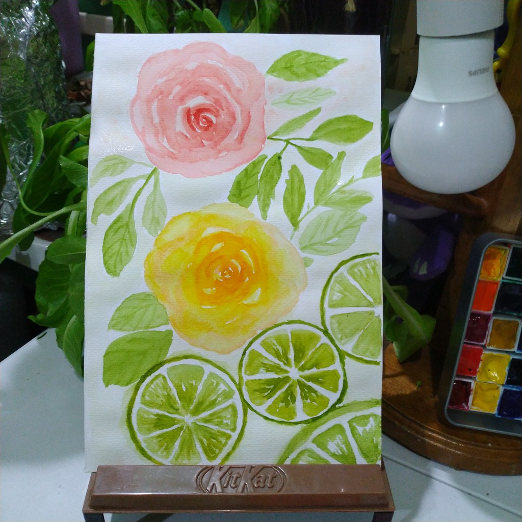 I use cheap brushes such as Scrivo sizes 12, 8, 6, and 4 for my floral and food compositions. I joined a Facebook group, Watercolor Afficionados last July and they had this monthly contest where you’re supposed to paint certain theme weekly. They then do a random picking of art work posted by members and the ones picked win prizes. For July, I participated by painting different fruits in combination with roses. The winners won brushes and mixing palettes.