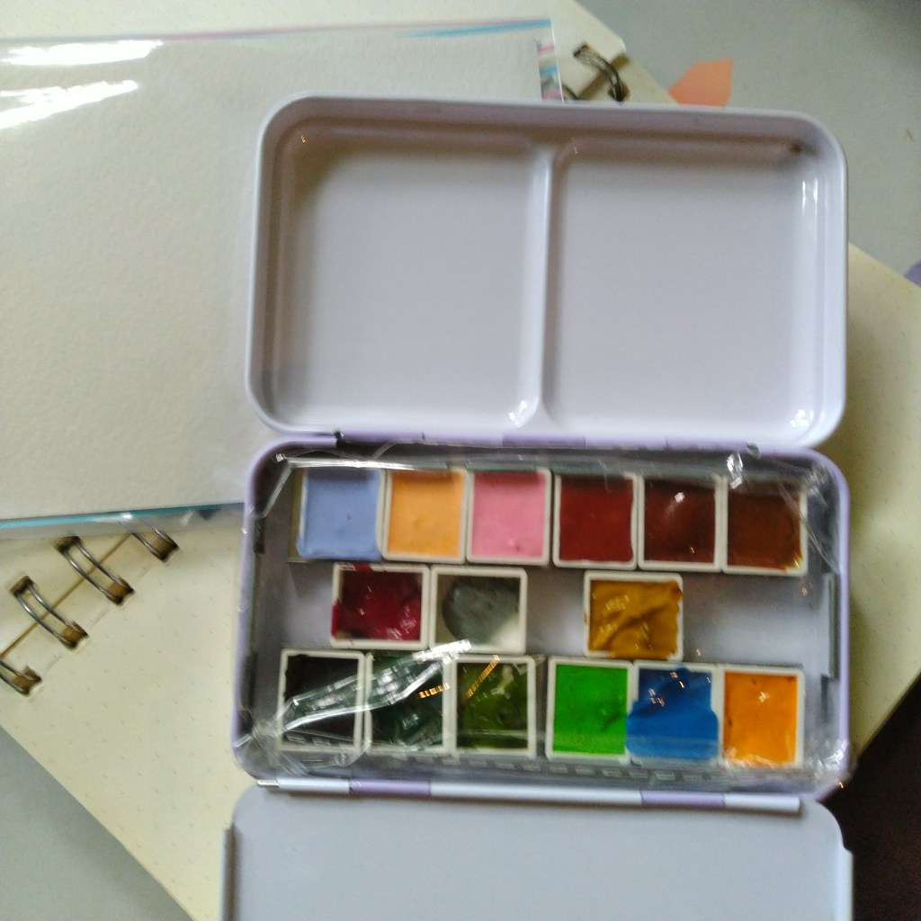 Now for my other art materials, my watercolor group mommies sold me palettes, as mentioned. The palettes are a mix of Sennelier, Mijello, Daniel Smith and M Graham in half pans. I also have a few tubes of Winston Newton Cotman and Van Gogh bought from Deovir. So far, I’m loving all of them. For cheaper paints, I’ve tried Aquarelle Louvre, Prang, and Simbarillon which my kids use now for their art projects. I still use them from time to time when practicing on pieces just to save my artist paints for final iterations. I honestly can’t afford to buy artist grade paints in tubes and sets yet because they tend to be pricey. As I don’t have a regular income yet, I am just thankful for friends who bought some of my paintings (they offered to buy them off my hands!) and handmade jewelries so I could buy painting supplies. I’m also thankful for the mommies who prepared my color palettes in half pans so I could experience using artist grade paints at a fraction of the cost of the sets. Below are some photos of my customized artist grade palettes for your reference: