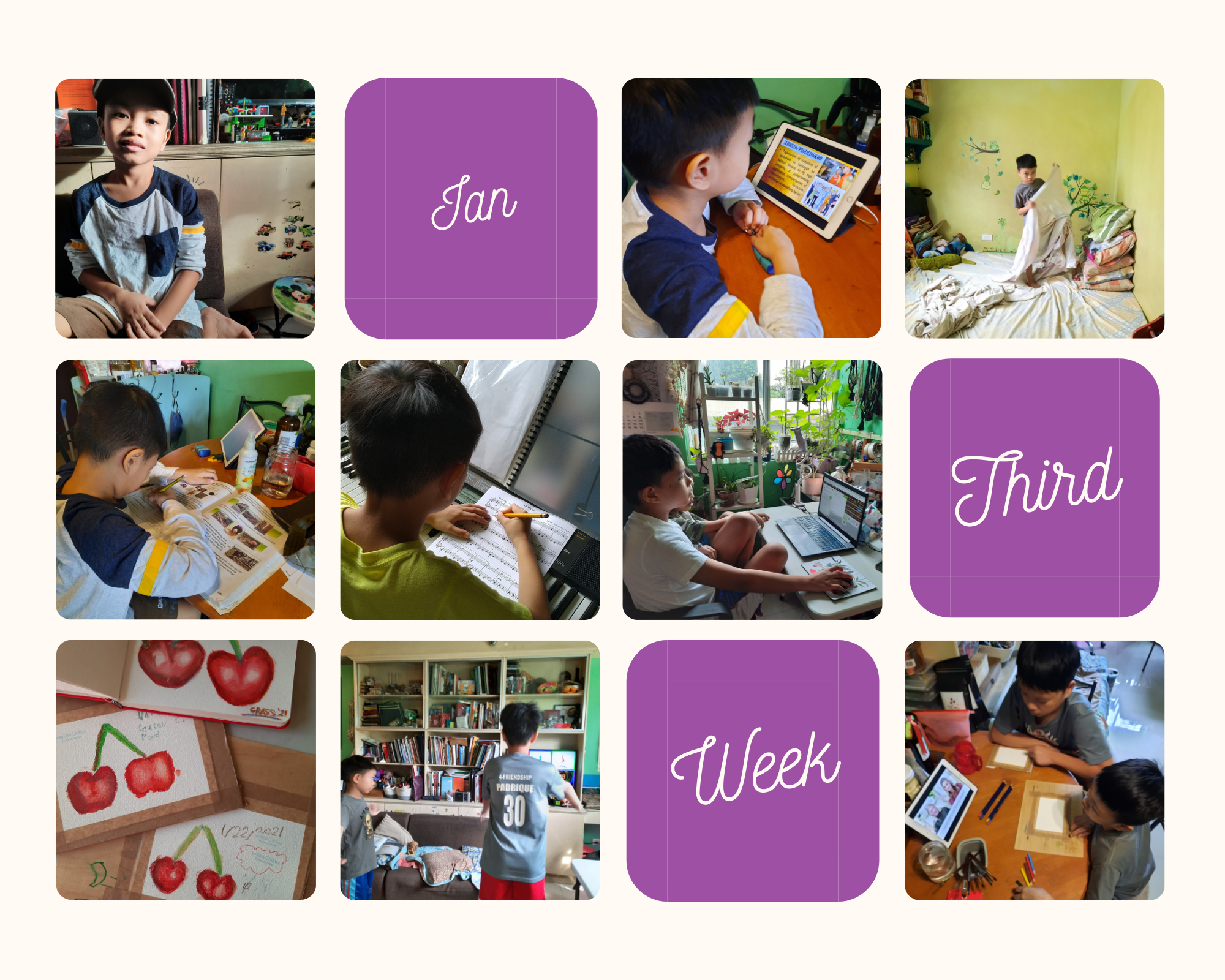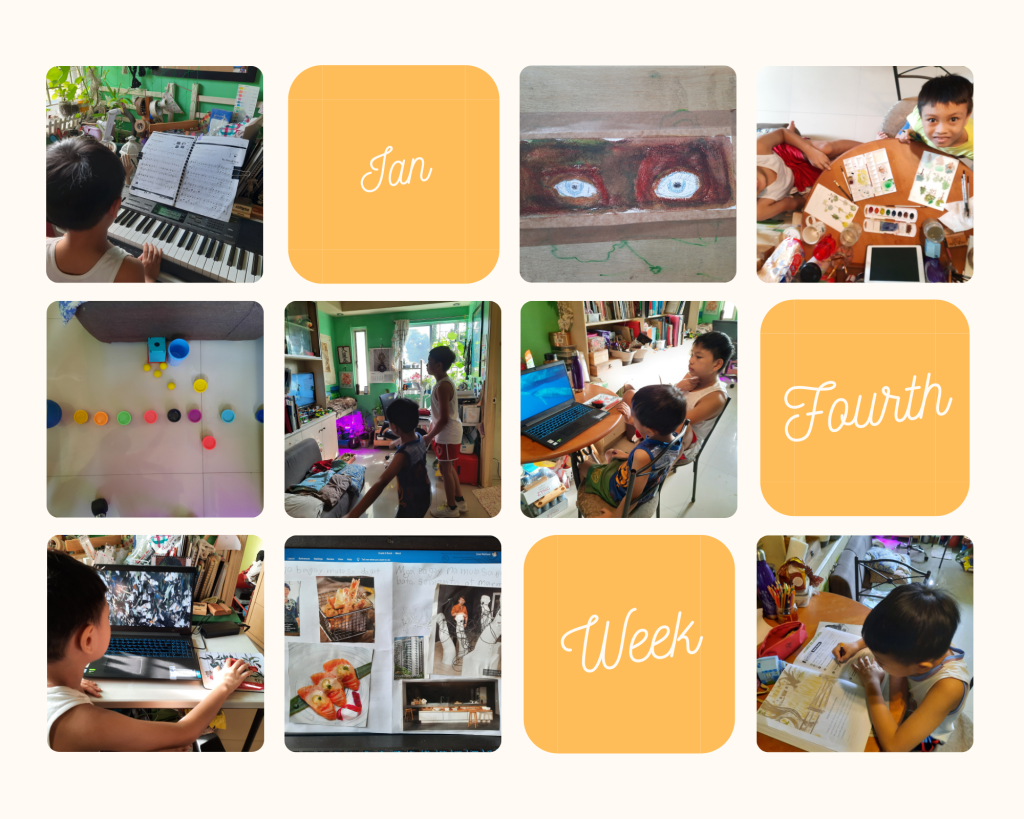 - Ian continued his lessons from last week in English, Filipino, and Music.
