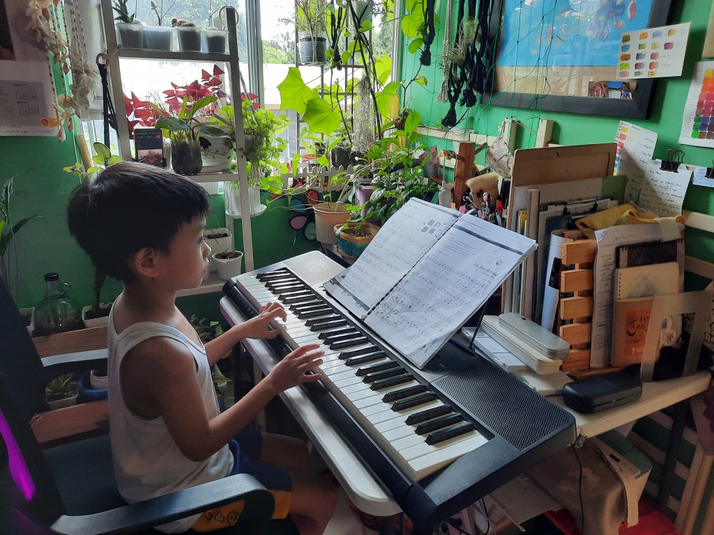 We didn’t miss Art Day Friday though coz it’s our favorite day of the week. Here are their art works for 3rd week and 4th week, as well as photos of their online piano class with their music teacher: