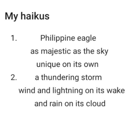 For Nereus’ HELE, they both made lotion bars under my guidance, following the recipe I have posted about in this previous post about DIYs. As also mentioned in our January Homeschooling Highlights, we are now focused on practicing Nereus’ writing skills. This week, I challenged him to write two Haiku poems following the required 17 syllables as traditionally done by the Japanese; in 5-7-5 count per line. He also wrote a short story about his favorite moments in life. All these were printed and included in his printed portfolio.