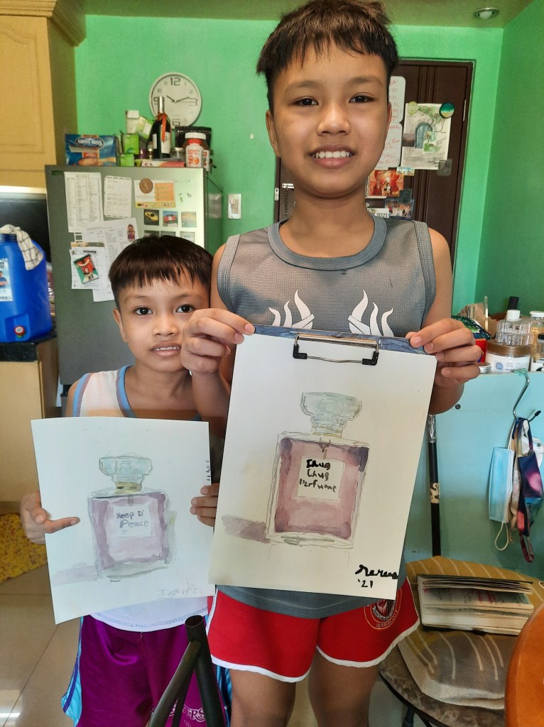 - For Art Day Friday, Ian, along with his brother, painted perfume bottle using watercolor and the tutorial about the subject by Let’s Make Art.