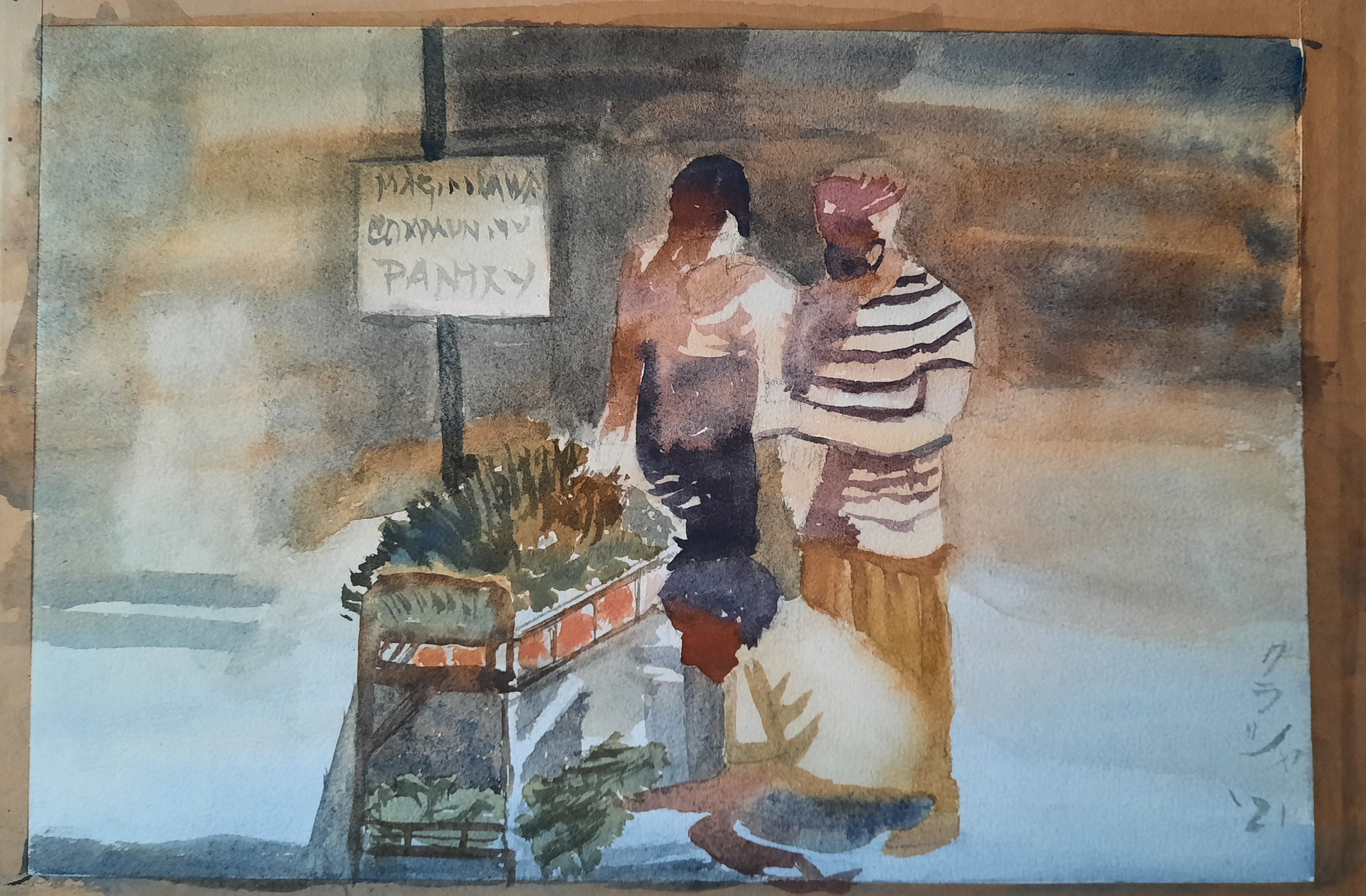 In the spirit of “bayanihan” which Community Pantry truly exhibits, I recently joined a painting class with JC Vargas, a local artist, where we painted the subject in watercolor. We based this painting from what we have seen on the news on where it started which is in Maginhawa street, UP Village, Quezon City.