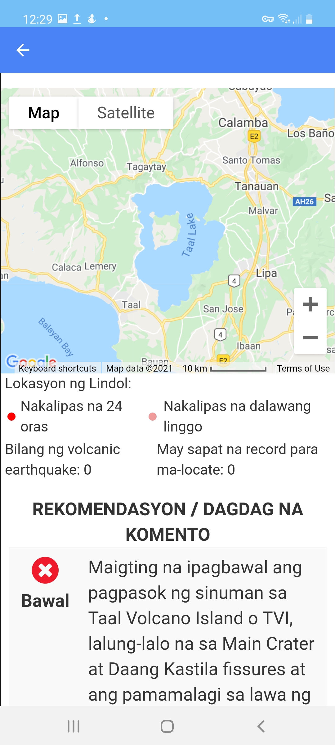 Below are screenshots of the app’s first iteration. Take note that the app is currently available for download by Android phone users for now and the language is currently in Filipino. I asked PHIVOLCS during the webinar if the app will be available in other languages and they said that there will be an English version in the next iterations. For English speakers, that’s good news for you. ๐Ÿ™‚