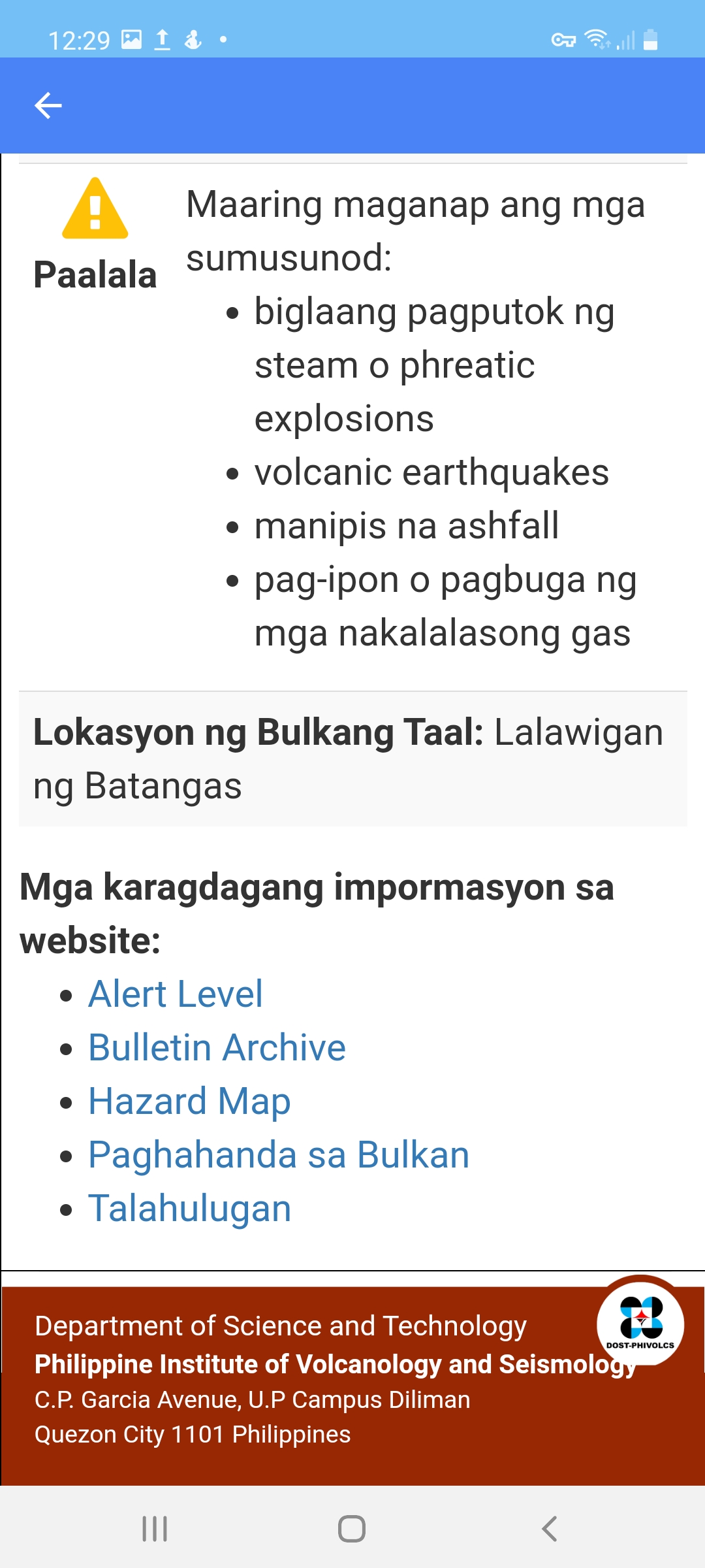 The app is so easy to use and navigate that even an non-techy person can use it. I think one of the good things of having an app like this is it allows you to see the bulletins straight from the experts. This means you don’t need to go searching for updates at social media or other news websites. It decreases the possibility of encountering fake news and misinformation which happened a lot last year at the height of Taal’s volcanic activity. Should you want to know more about our volcanoes, you can also click the links at the bottom of the bulletin. PHIVOLCS encourages the app users to also send their comments and suggestions for the improvement of the app.