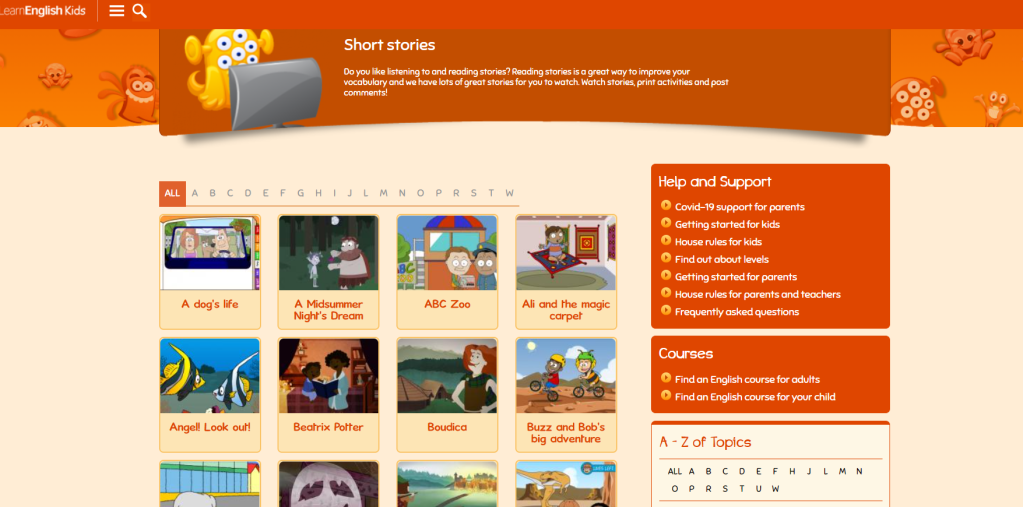 So to master the grammar and vocabulary rules, and whatnot, I have made a list of online resources that my kids and I will be visiting and exploring a lot this academic year. This list focuses on learning the language through storytelling because that’s how I did it back in the day, by reading so many books. I am doing the same for my kids who are bookworms like me. The online resources below have games, activities, and other learning materials to offer for kids and parents as well. Feel fee to explore as you go along with your homeschooling.