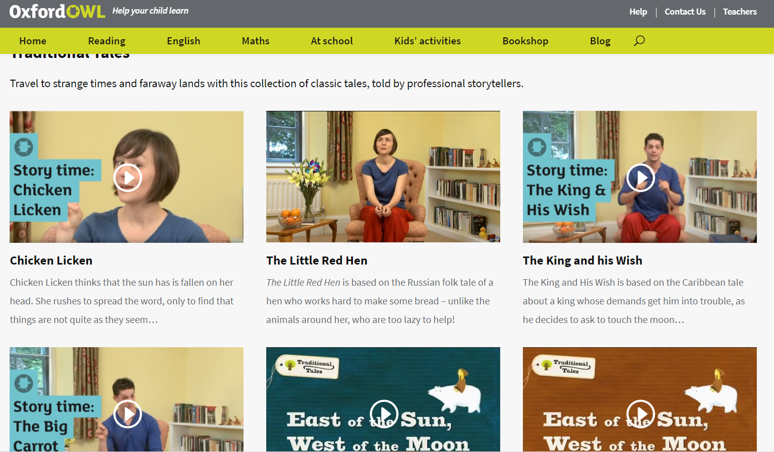 Oxford Owl is another gem for teachers and students. The website offers a huge collection of storytelling videos, activities, ebook library, that you can explore by age group. As you can see in the screenshot of the homepage below, the materials in the website can be used by kids from ages 3 to 11. I did a cursory look at their array of traditional tales and it’s fun to see story tellers tell the stories by imitating animal sounds and changing their tone from male to female. Super fun to watch that I also want to do the same while reading books to my kids!