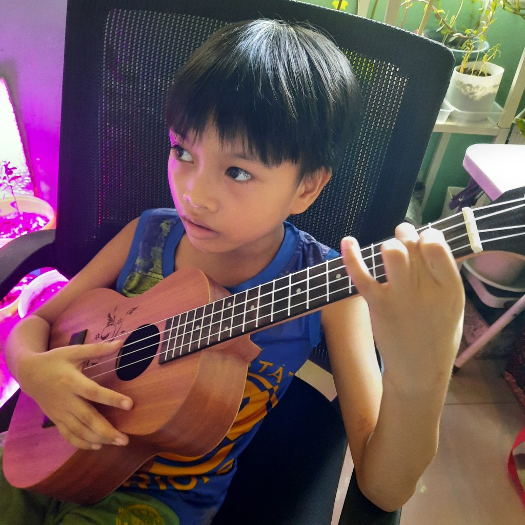 For Music, we learned to play more songs this month using our ukulele through our teacher Eric’s lessons. We got Ian a brand new ukulele as he has been borrowing mine whenever he feels like strumming. Some of the songs we learned to play include classics such as: