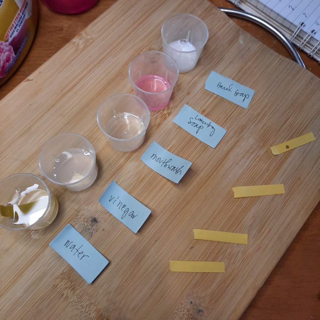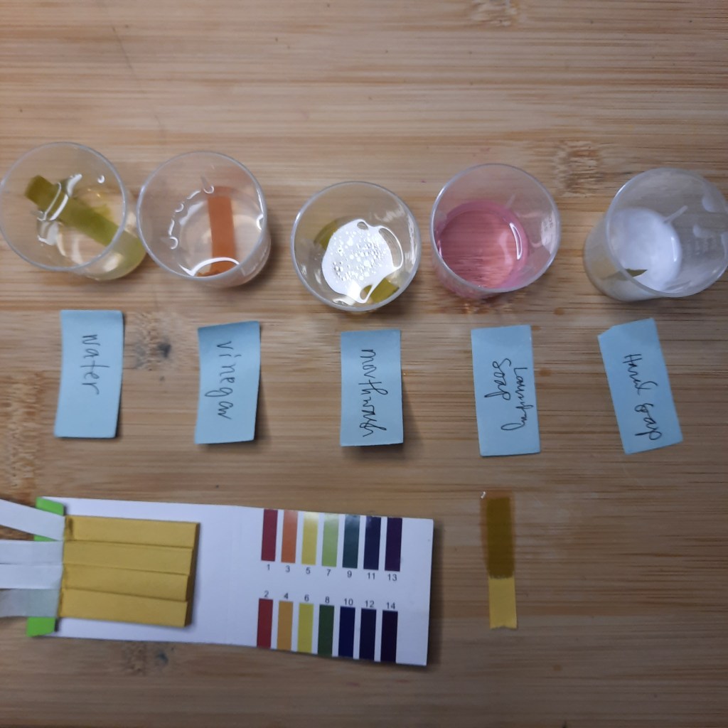 In Science, Ian did an experiment on determining the pH of various liquids at home using the same Litmus paper I use in hydroponics. Ian has always been fascinated by Science so it’s no surprise to see him enjoy the way the color of the paper strips changed when added to the liquids. He also made a collage of objects divided according to its state – liquid, gas, or solid.