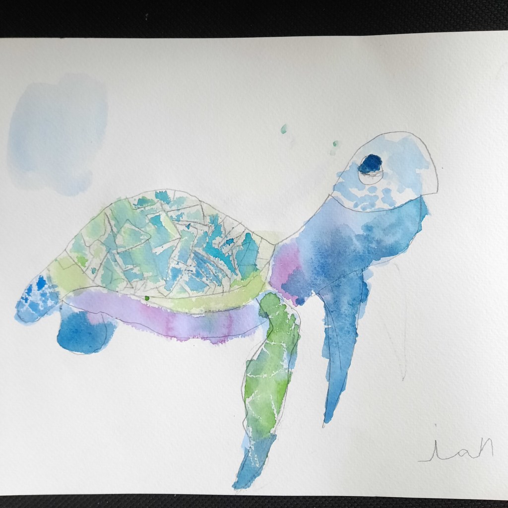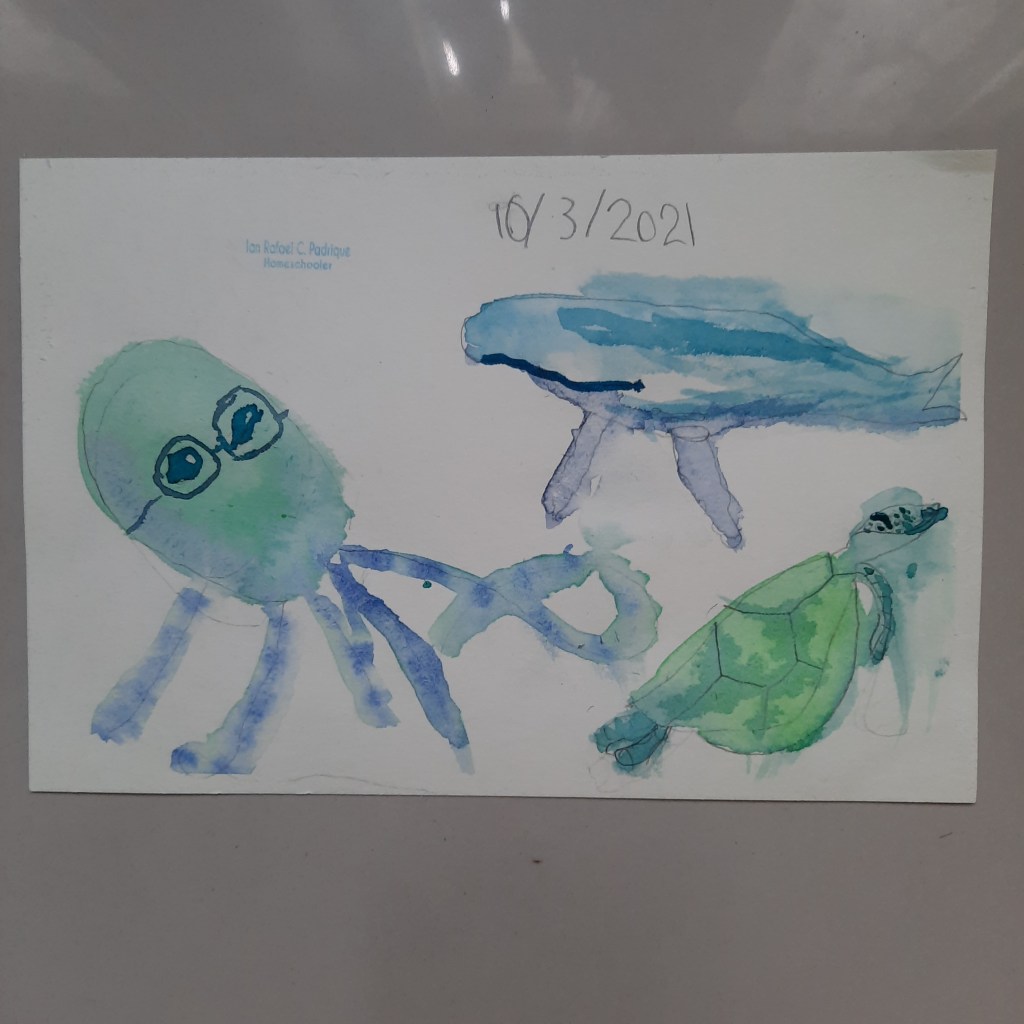 As mentioned, most of Ian’s art activities focused on the theme, ocean. Here are his art works for this month that he learned to paint through his teachers as Watercolor Afficionados: