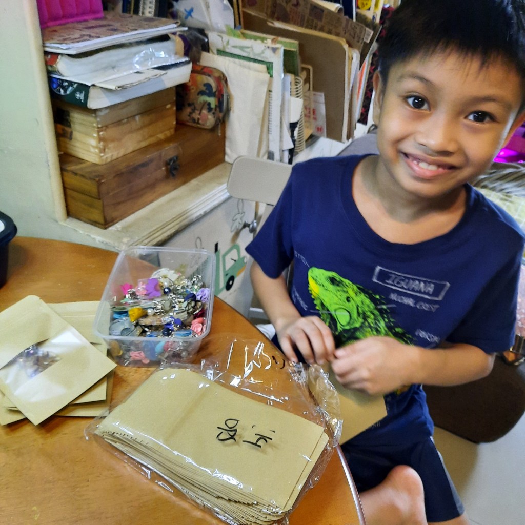 Homeschooling will never be complete without Ian learning new life skills. For this month, Ian helped me cook ginatang “bilo-bilo”, a local delicacy made of ground sticky rice molded into balls cooked with coconut milk, sugar, sweet potato, banana, jackfruit, cassava, etc. He also learned how I make resin keychains and made quite a lot this month for a friend’s order. Ian helped me pack each keychain. I usually sell my craft at our Shopee store.