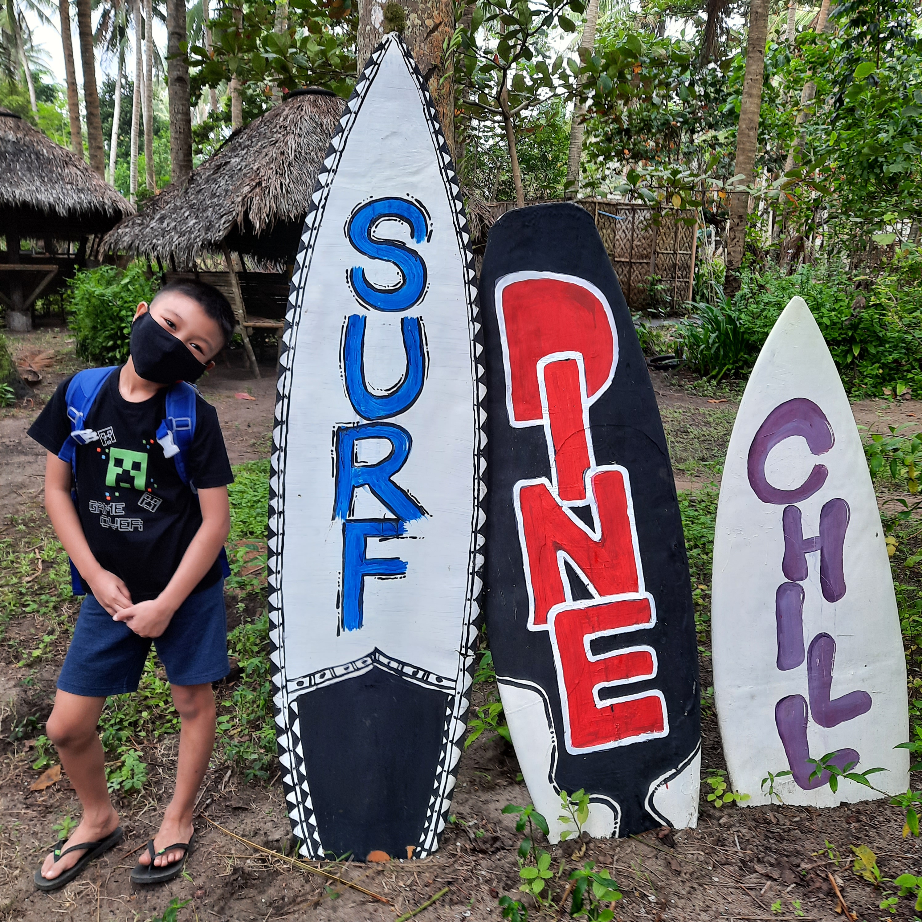 I found out during our visit last month that Lola Sayong struggled financially in this pandemic like most businesses. We all know that tourism sector was hit hard for the past two years. What the surf camp did to augment their income was to offer workation packages for people who chose to work away from home. You’d need to inquire at their Facebook page for the rate but last time I checked it was Php 10,000 per month per pax. The package includes a stay in a nipa hut for a month, food, and one of the crew will also do your laundry. There’s internet connection at their work station (video below) with decent speed. During our stay, my son and I were able to attend our Zoom classes with little issue. I think Lola Sayong’s is the cheapest workation package I’ve heard of so far.