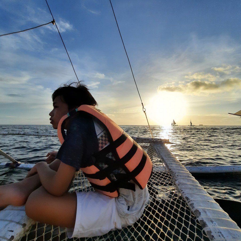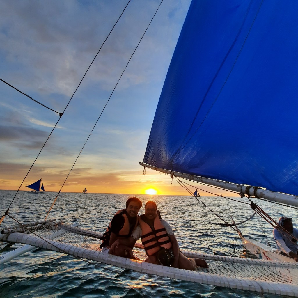 I saw so many sail boats at White Beach on our first day in Boracay, I told the whole family that we will be sailing on one during sunset the next day. God was good. It was raining intermittently during the day but the weather cleared up in the afternoon so we were able to go sailing. My wish to sail during sunset was granted! Our guide was also kind enough to take these awesome shots of us during the experience! I didn’t know sailboats can go so fast too (video below)!