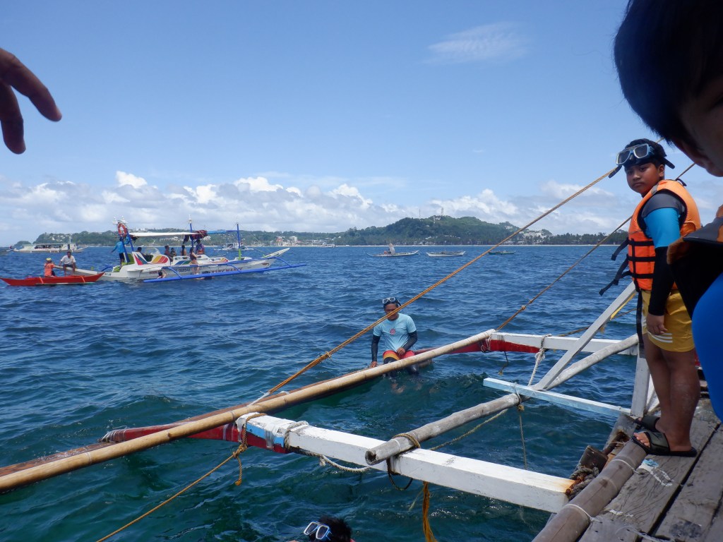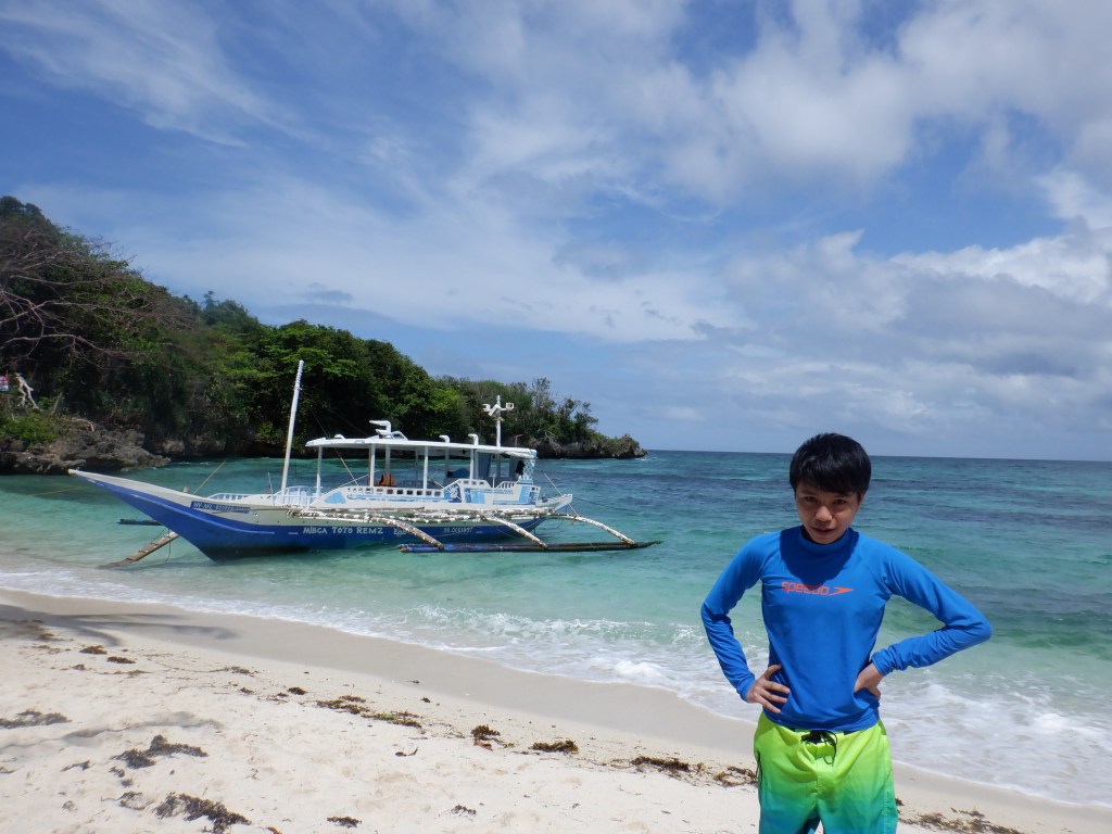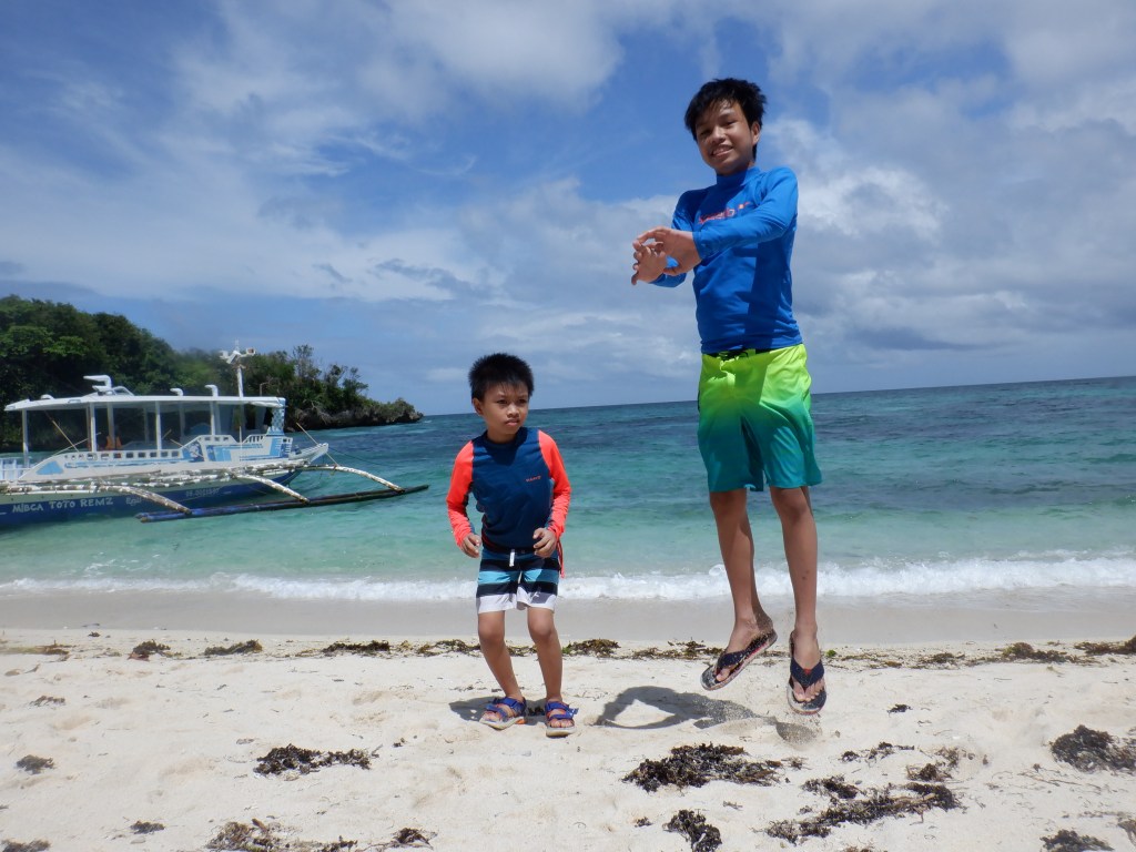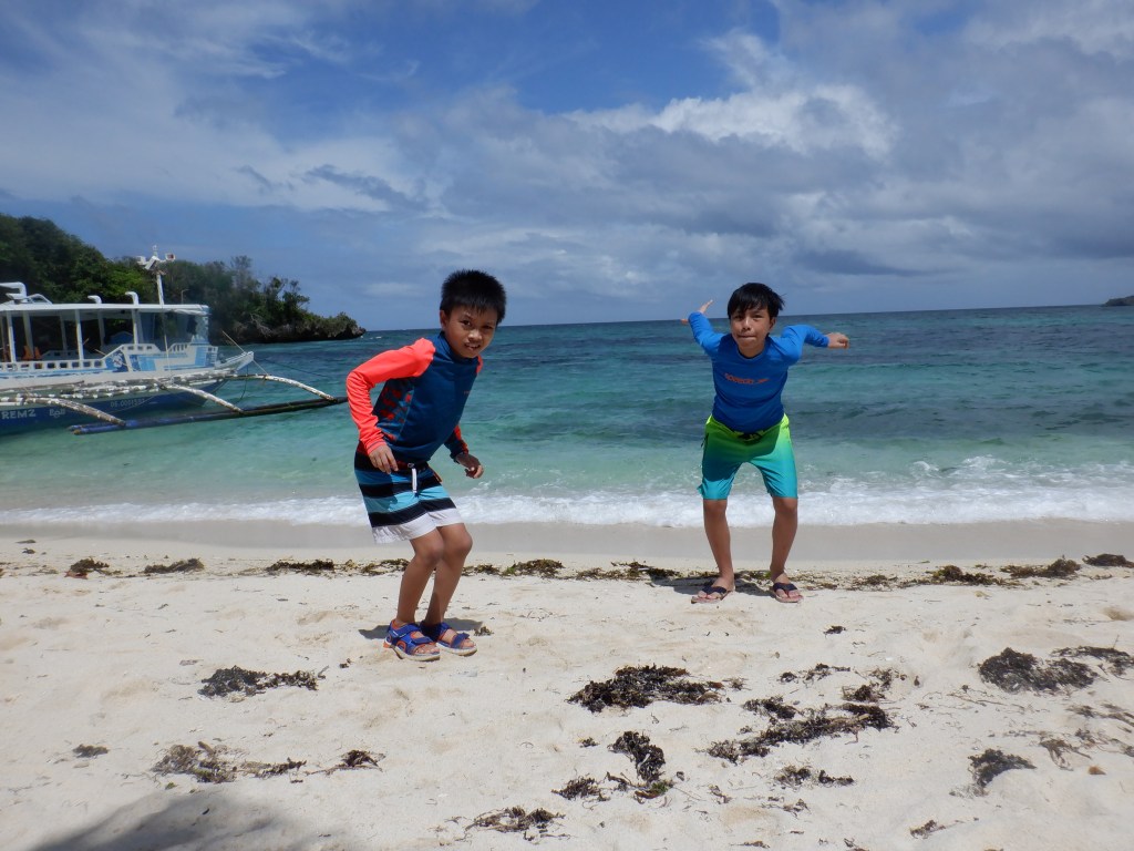 Our first stop was Puka Beach (video below). Puka is a long stretch of white beach consisting of same powdery sand at Station 2 sans commercial establishments. Compared to White Beach, Puka has less green algae and the beach’s slope is steeper so you might need to watch your kids as the water becomes deep at a short distance from the shore. I was happy to see small fishes and a few corals though which was nice. Thankfully also, there were vendors that sold “taho” and “bananacue” so we had snacks while at Puka. The caveat – no garbage bin in sight so we had to bring our trash with us. I wish the local authorities would provide trash bins though because I’d hate to see trash being thrown irresponsibly everywhere.