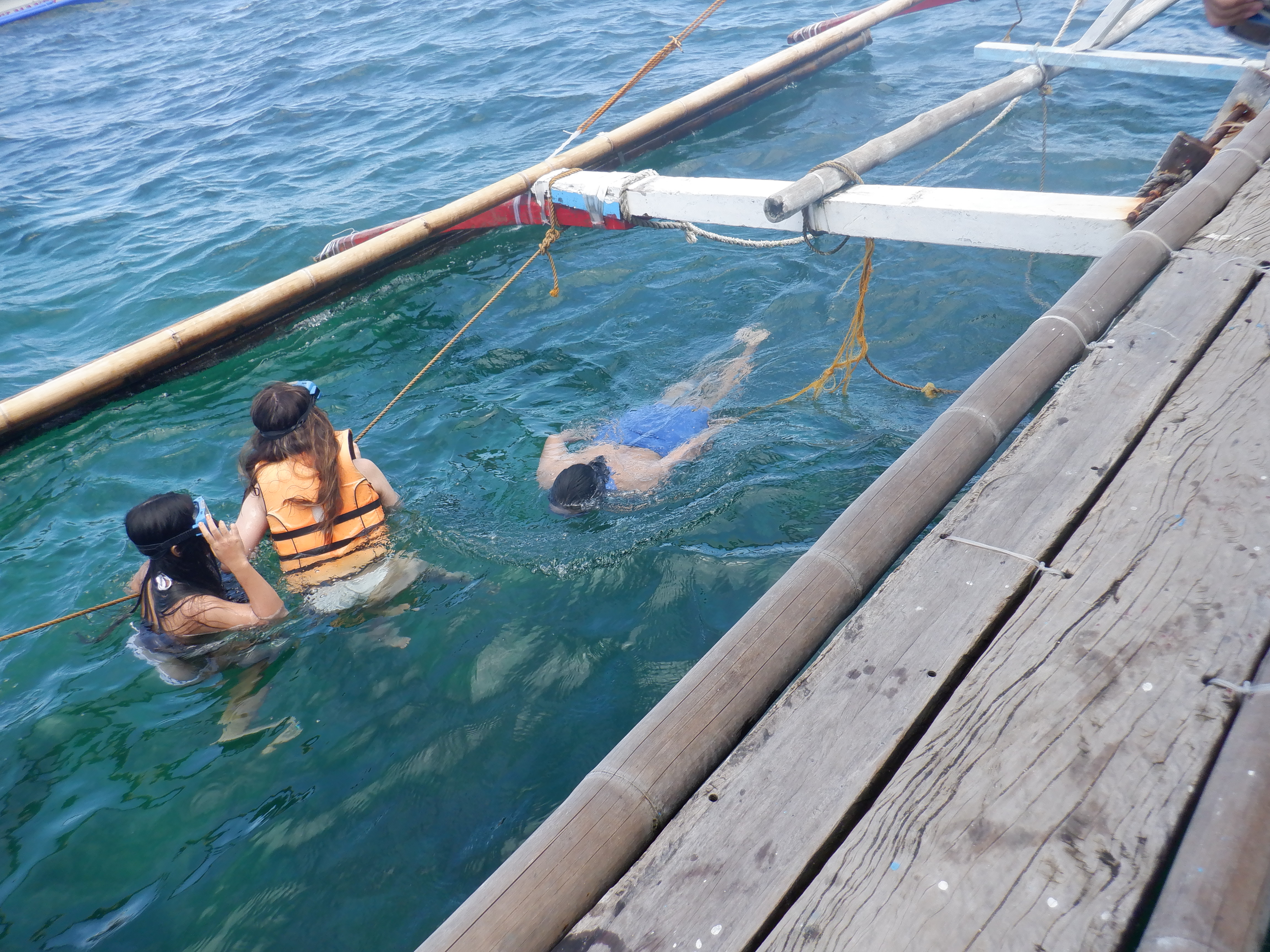 Our second stop was Coral Garden where we got a chance to snorkel and observe the corals. I brought my swim goggles with me so I didn’t need to use the mask that was provided to us. The fee for mask rental was Php 40 pesos (less than 1 USD). The current was a little strong and since I didn’t wear the life vest, I swam close to the boat so I could hold on to it when I got tired.