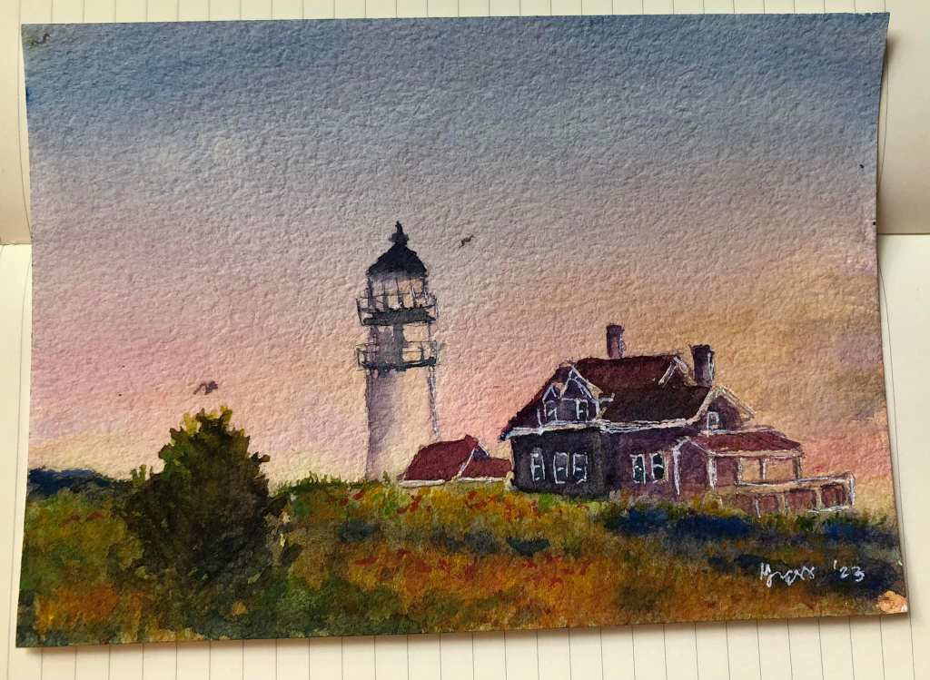 I used to paint on very light background and sometimes I even mask out my main subject so that background color doesn’t mix on them. After reading this book, I realized that a subject is surrounded with, and thus, colored by the atmosphere. So why isolate it? In the painting of lighthouse I sold last week, I painted the sky colors all over the piece to make sure that the light house, the cabin, and foreground, are all bathed in the warm light of the sunset. The painting sold in less than one hour after I posted it on Facebook, modesty aside. Yuko’s lesson about background worked. Below is my Amazon associate link to Nagayama san’s book. At risk again of sounding like a broken record, when you click the link below, it will land you to Amazon where you can directly check out the book. When you buy the book, I get a bit of commission that will help me fund this blog site at no extra cost to you. 🙂