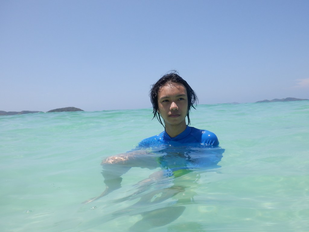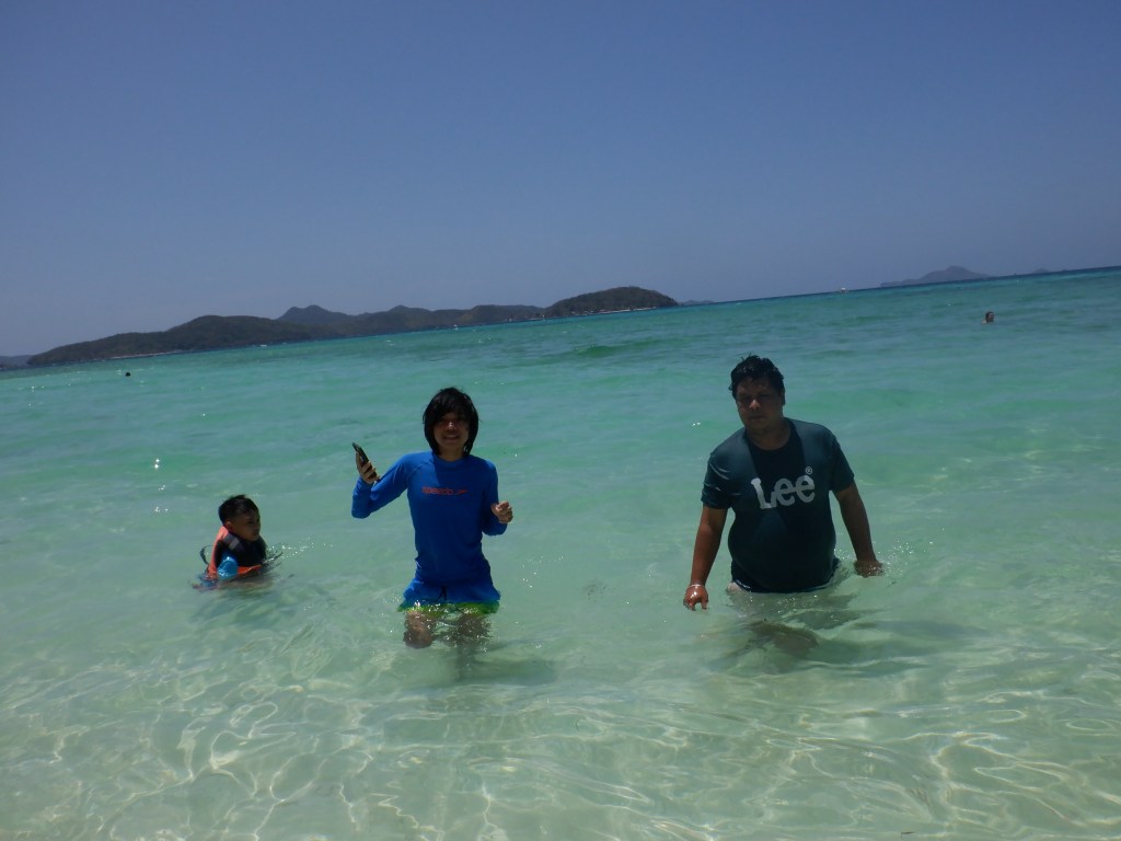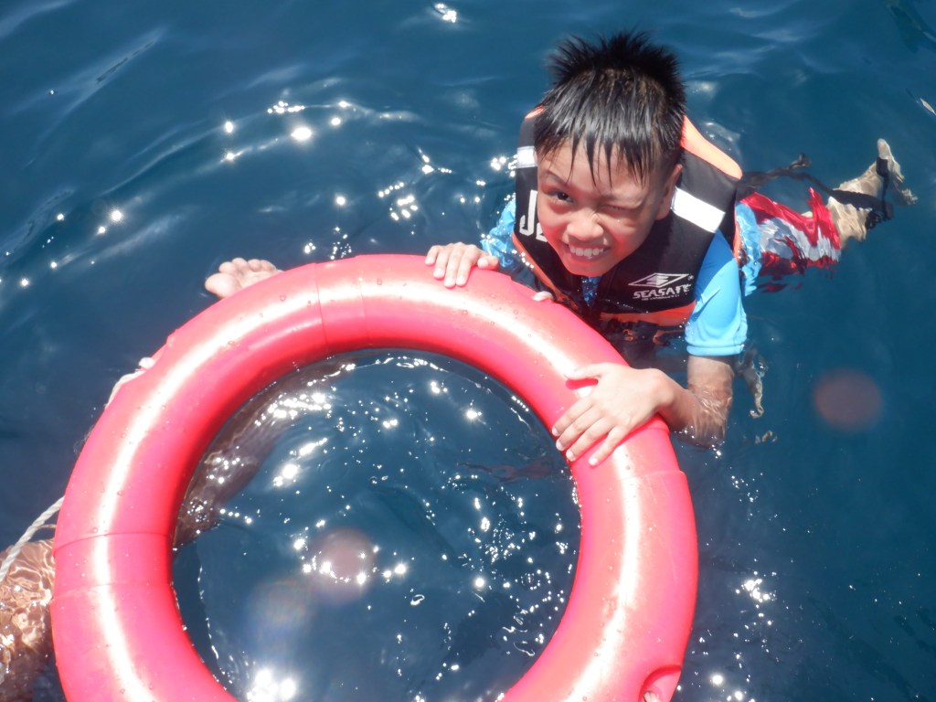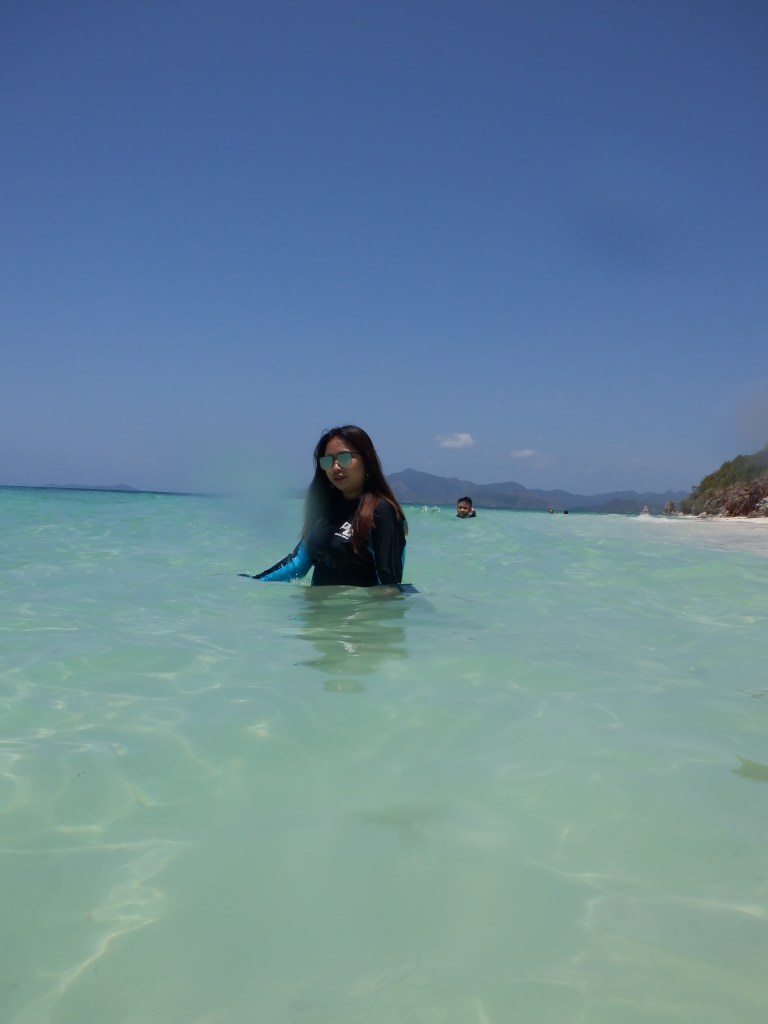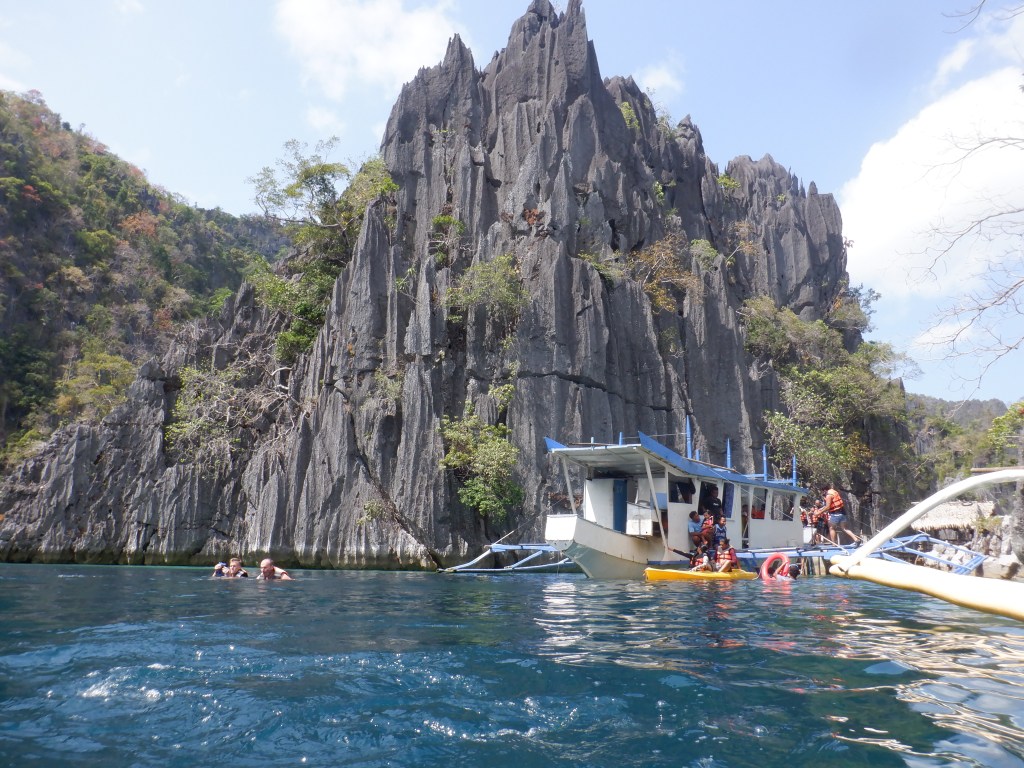 My thesis adviser in Geology who mapped this part of Palawan positively recommended this island to visit when I told him the family is visiting Coron. He recommends this one because a few years ago, he conducted a geological mapping of the whole island and fell in love with it. I did too. Who wouldn’t? It has wide sandy beach made of white sugar-sized sand. There are plenty of trees to hide from the sun under, verdant Bermuda grass, huts, and places to chill on the island. Despite the two-hour travel time and strong waves along the way, the island is all worth it! As you can see, my little boy enjoyed swimming here with his life vest. The water is shallow enough for tens of meters away from the shore for beginner to average swimmers.