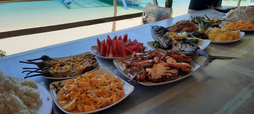 I can’t be sure why the island is named so but I will take a wild guess that it’s because one can see a pair of hills on both ends of the island and a sandy beach in the middle upon approach. Nevertheless, despite its small size, we loved exploring around here also because it offers sandy beach, higher bathymetry (compared to Malcapuya), and there were more fish here during our visit. The long bamboo table covered with roof made of palm leaves on the left side where our boat docked was where we had lunch. Basically, the island has rock formations on the left side with slightly steep cliff that drops towards the beach, sandy beach in the middle, and a low hill on the right side with great 360 view of the island. The island also has a sand bar that connects to another island that we weren’t allowed to visit because it’s a private resort. One can walk on the bar during low tide to access the private resort. Behind the island, the water’s wave is much stronger and deeper so it’s best to swim on the docking side/downwind side.