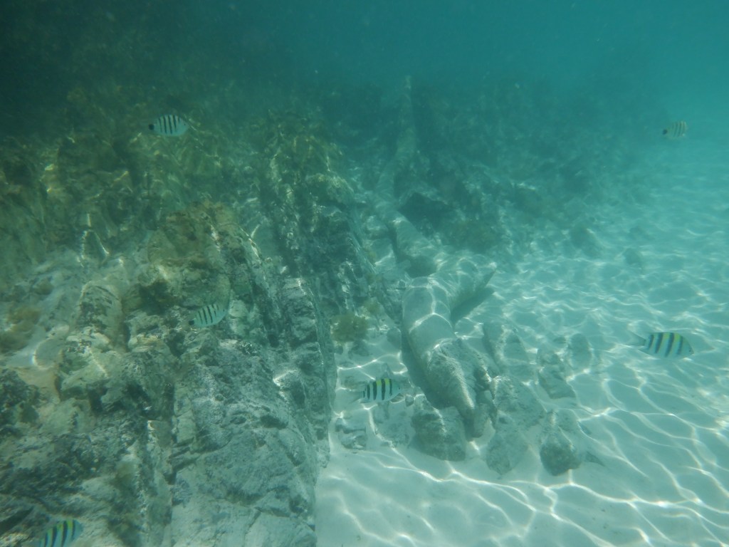 Skeleton Wreck was named so because when water is shallow enough, one could snorkel just a few meters from the shore and see an outline of what once a 25-meter long Japanese supply ship that was hit by an airstrike during World War II according to our guide. It was high tide during our visit and the camera’s battery was drained empty by that time so I was not able to get good photos. We also got to visit the nearby Coral Garden. I used rented mask and snorkel set and shoe type fins to snorkel around but was not able to get great photos. (When I returned, I bought a spare battery for my future travels, lesson learned).
