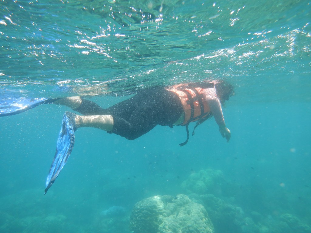 While Lusong Gunboat was impressive, East Tangat wreck is my favorite among the shipwrecks we visited simply because the coral reef there was much more diverse and the waves much gentler. My favorite bit was when I toured my sister around the corals surrounding the boat and at the backreef. She wasn’t a confident swimmer and was a bit scared of the corals but she enjoyed the towing I gave her eventually that when we visited the nearby Pass Island, she was able to swim over the corals there without life vest. I even teased my mom then. Told her as we were approaching the shore, “Hey mom, I’m returning your youngest daughter, intact and alive, as promised!”. We had a good laugh.