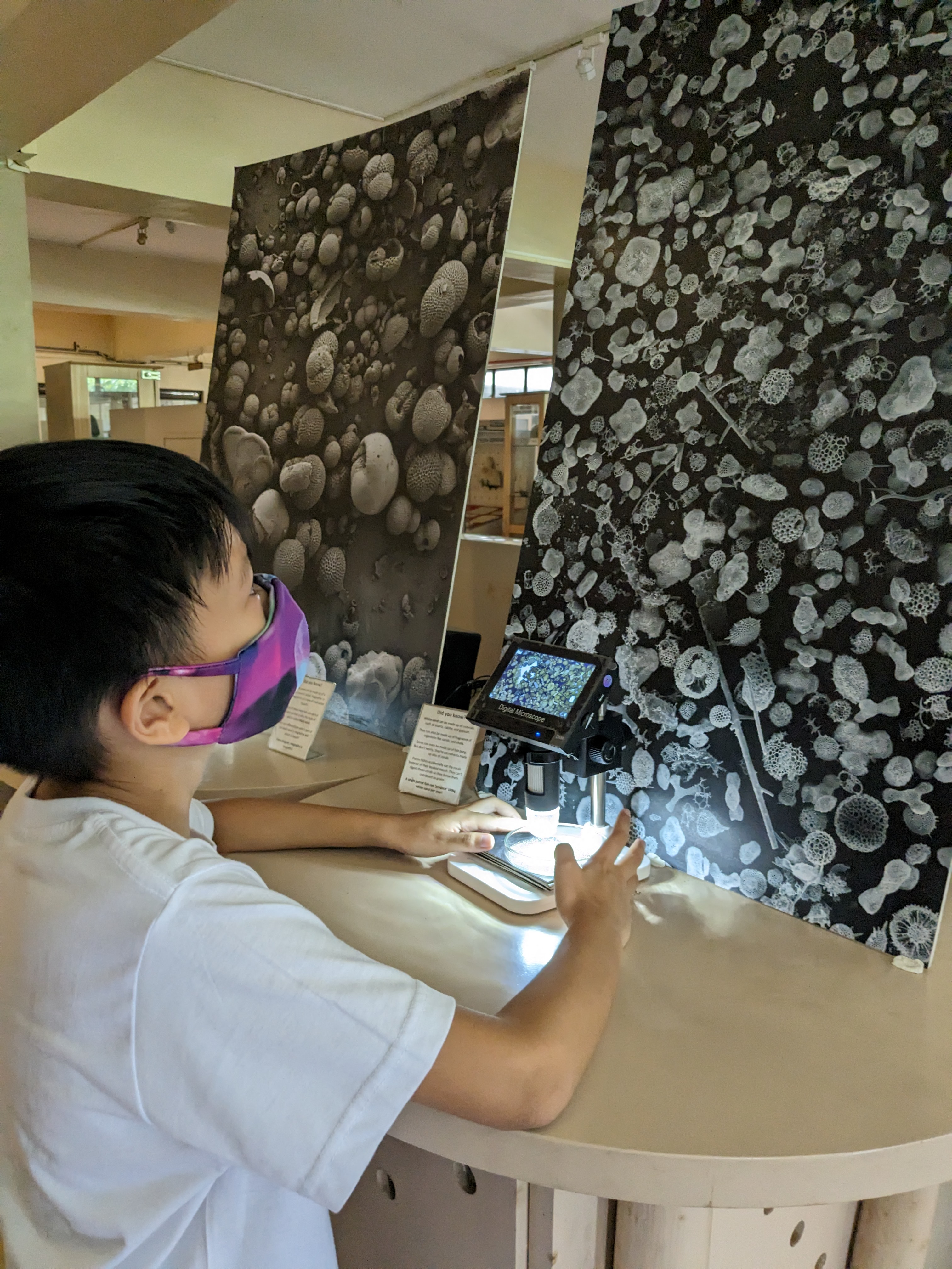 I got recently hired to be a research associate for the museum of the National Institute of Geological Sciences in our university. Last Thursday I thought I’d bring Ian to work with me so that he’ll see what I do, and why I’m often away during day time. I gave him a private tour of the museum to also assess how the museum displays are able to capture the attention of kids his age. Below are a series of photos I took of him during his independent exploration of the museum: