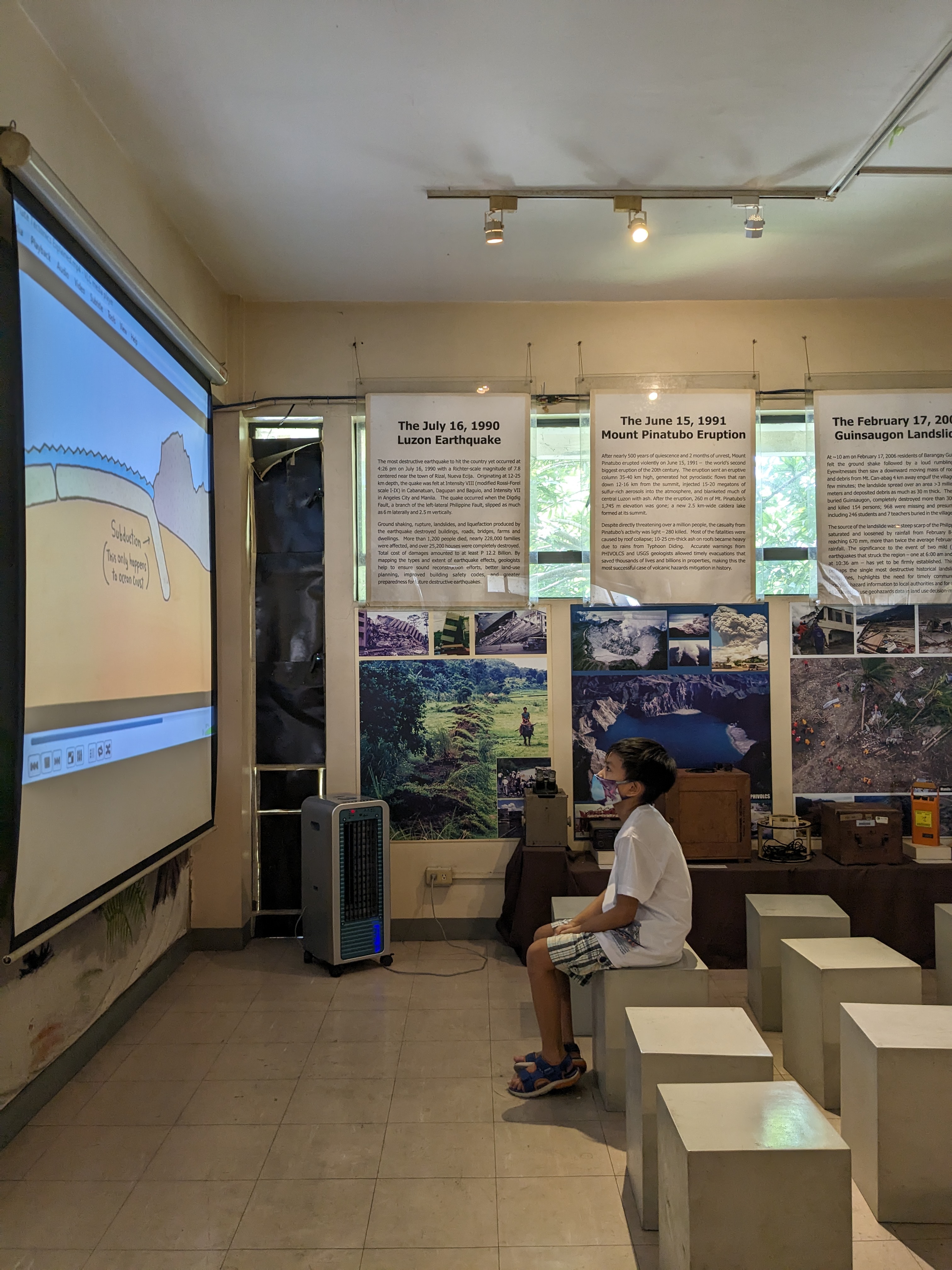 Walking around got Ian a bit tired, he sat at one of the block chairs in the audio-visual section of the museum to watch science videos, including ones by Dr. Binocs, his favorite YouTube channel for science.