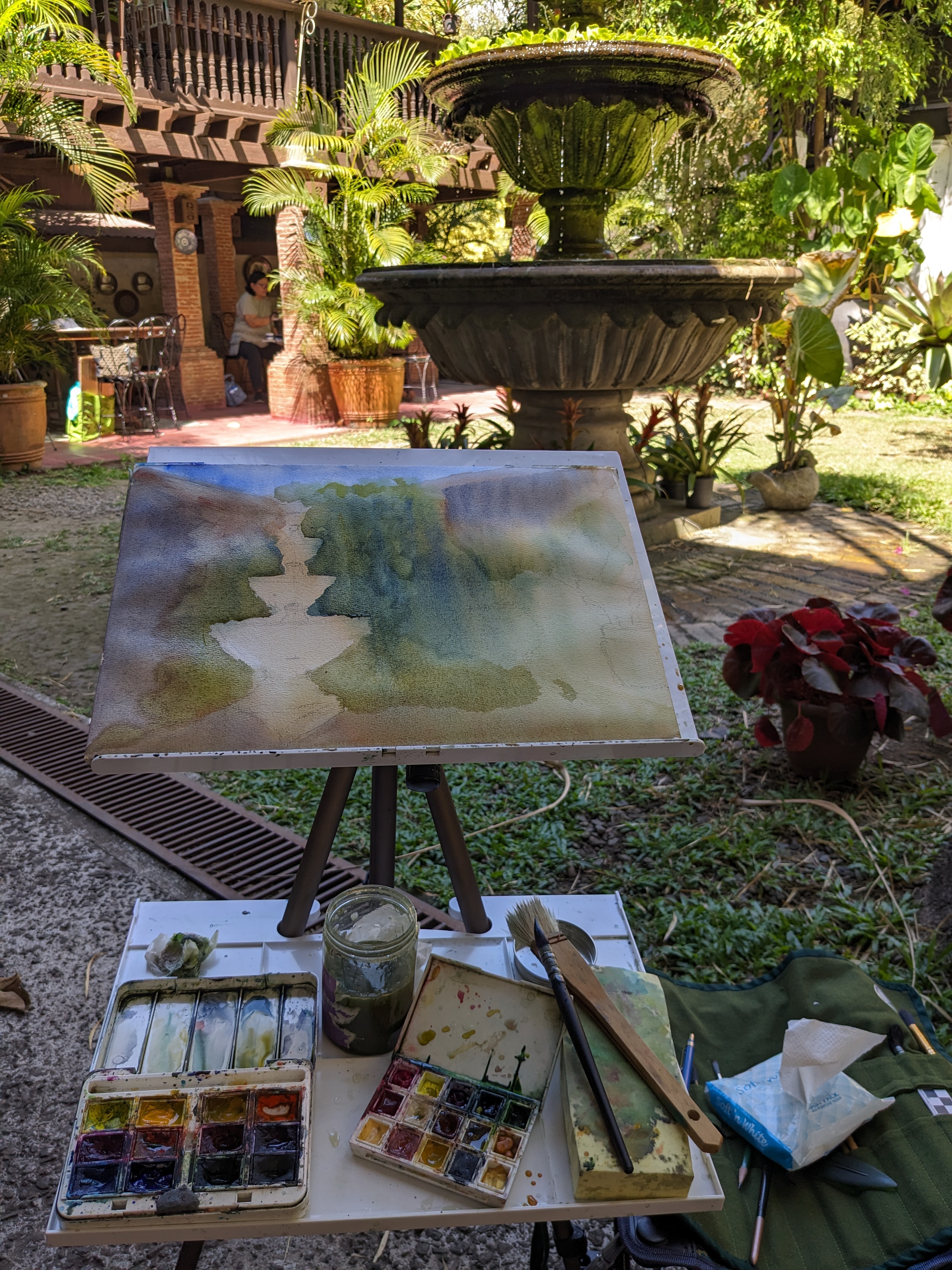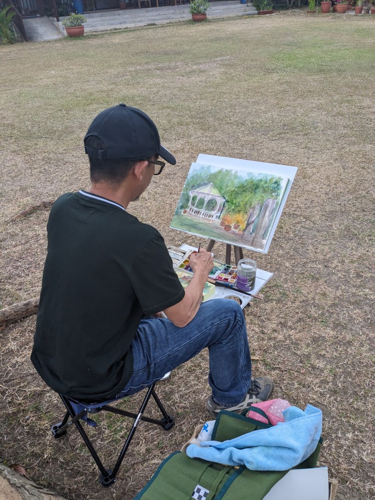 When sir Lito Ballaran, my friend and watercolor mentor, mentioned he was hosting an en plein air painting session in his hometown of San Pablo, Laguna, I sent him and his wife a quick message expressing my keen interest in joining. You see, Lito had been my go-to mentor for watercolor portrait painting back in February last year, and man, did I pick up some invaluable skills during those sessions. Given how rare it is for him to offer classes, I couldn’t pass up the opportunity to soak up more knowledge from him.