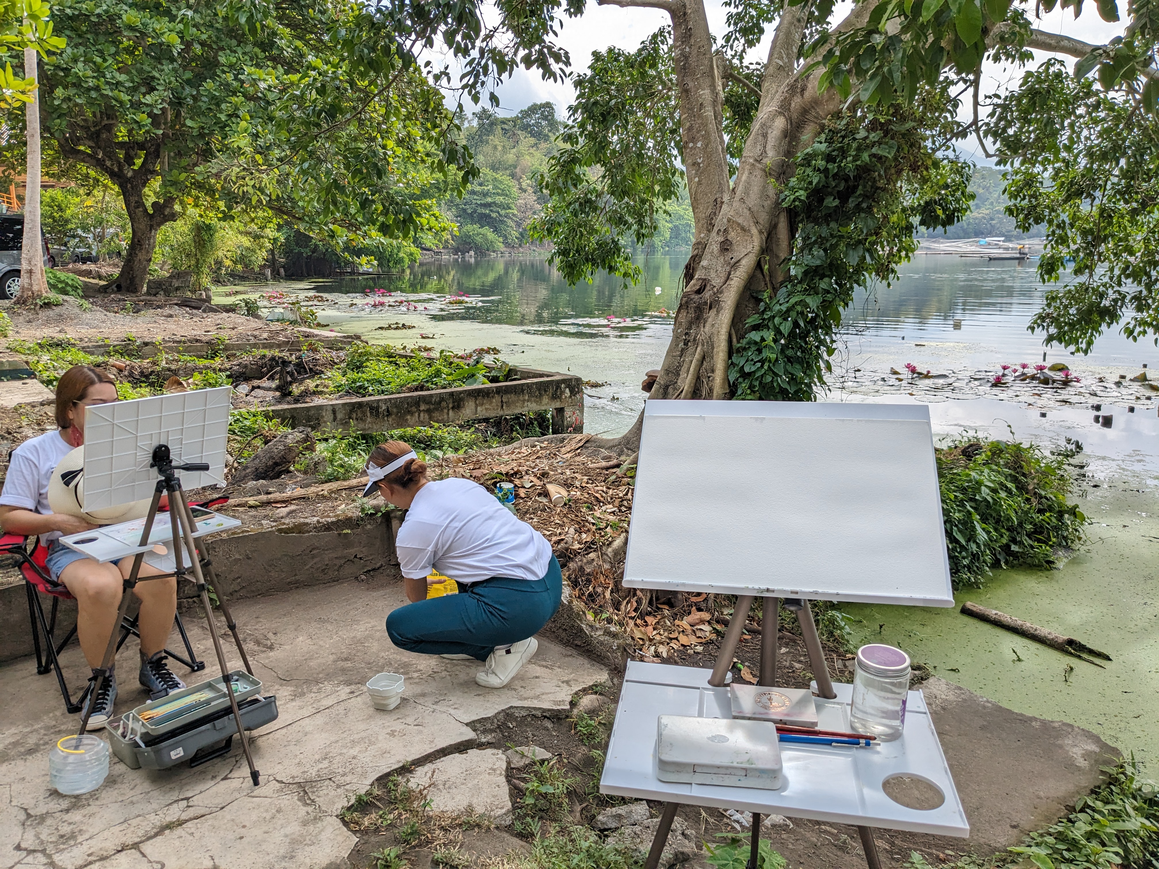 On the second day of our plein air painting class, we traveled to Sampaloc Lake, the largest and most recently formed volcanic maar lake in the area, to put into practice the techniques we acquired on Day 1. The subject for the painting was anything in the vicinity of and above the lake.
