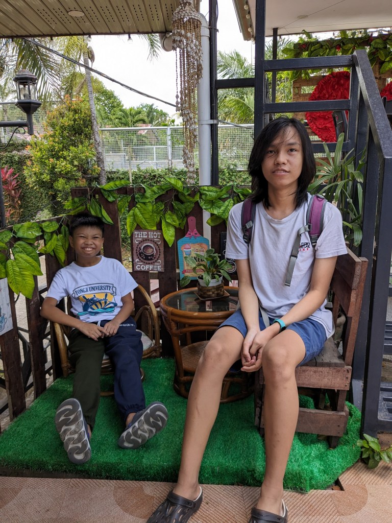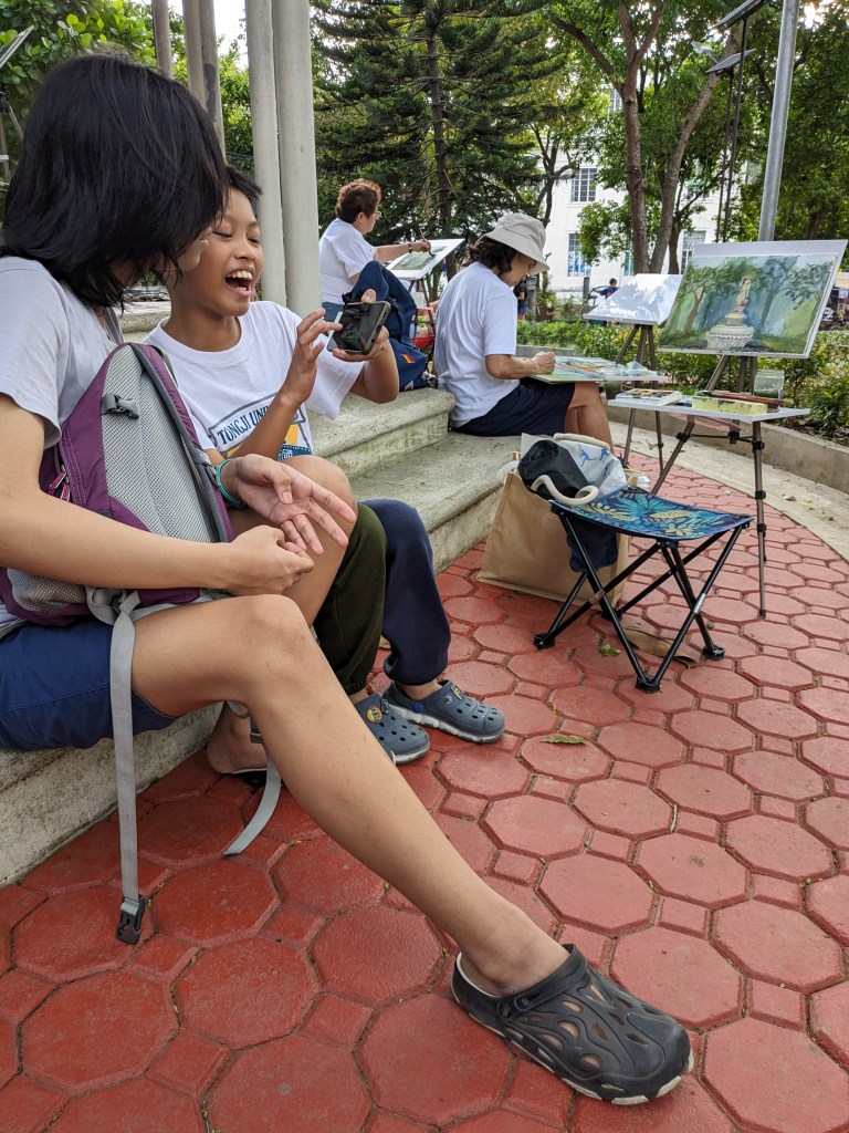 As for the whereabouts of my children during our painting escapade, they found themselves engrossed in their electronic devices, indulging in their favorite games—a rare allowance granted by me, given my usual strict stance on screen time. However, their occasional requests for snacks from passing vendors did serve as gentle distractions, a testament to the dynamic interplay between artistry and parental responsibilities. When in the Philippines, expect ambulant vendors to go near a group of people hoping to make a sale. I was happy to oblige them. Here are photos of the kids during day 2.