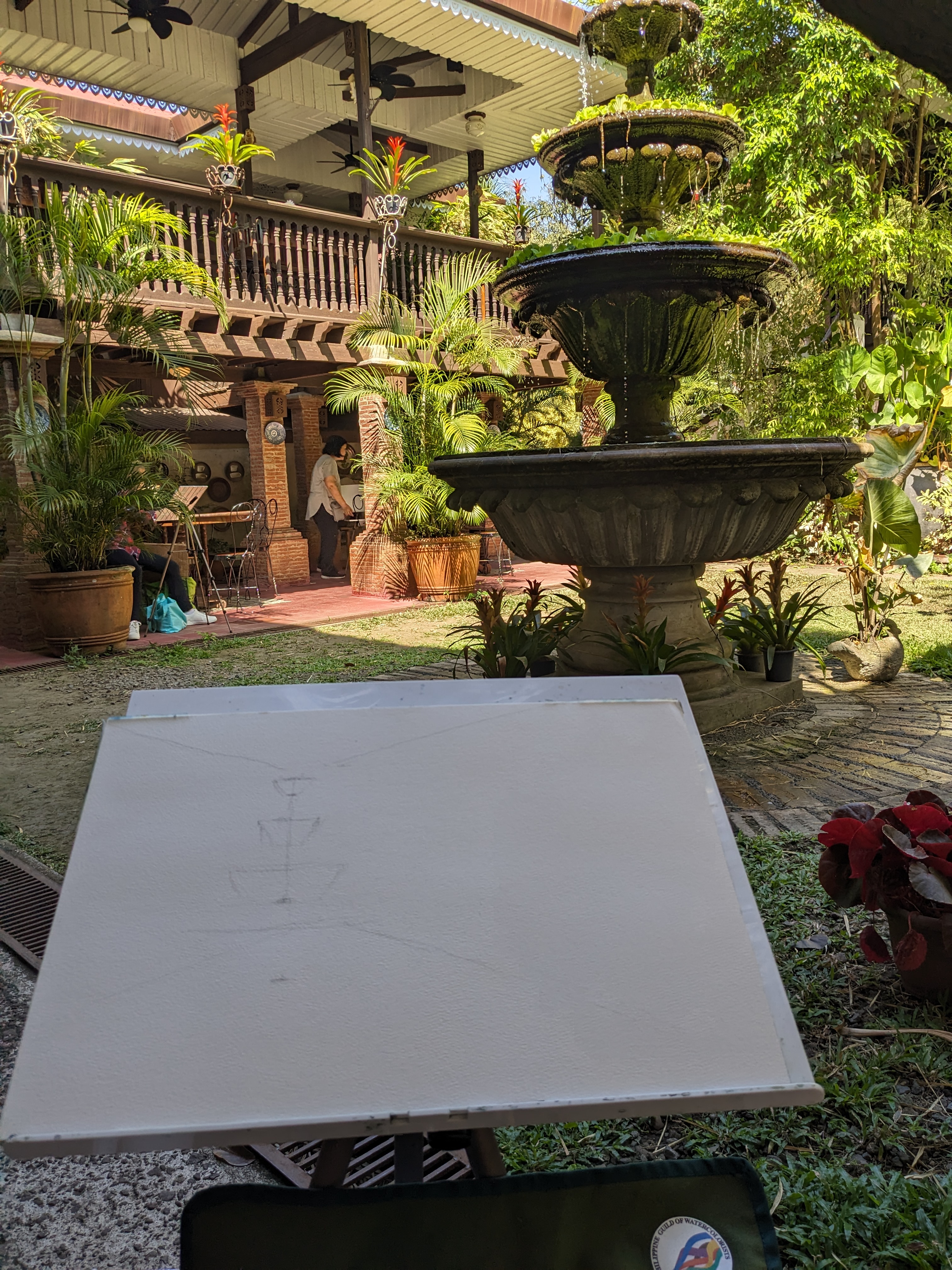 With our bellies full, it was back to business. We strolled out to Casa’s garden to scout out the perfect spot to unleash our artistic prowess. As for me, I had my eye on this sweet gazebo nestled in the garden—check out the pic below: