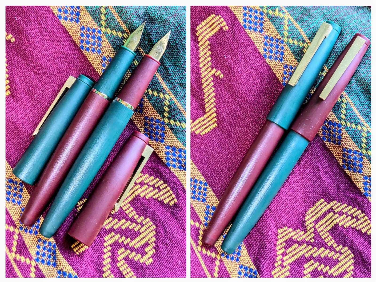 Given the strong recommendations for the Jinhao 80 in the community, I decided to give it a try with an EF nib. The seller did caution me that EF nibs are typically scratchy, but I took the plunge—and I couldn’t be happier! The EF nib on my first Jinhao 80 (a sleek black model, photo below) glides smoothly with a only a hint of feedback, even on the lowest-quality paper in my stash. I was so pleased that I bought two more, this time in maroon and green, the official colors of my alma mater. I even swapped the nib colors between them, creating a set of university-themed pens to commemorate my graduation.