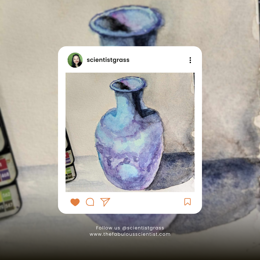 I have a book about how to create stunning acrylic art and saw this jar painted using the medium. I painted a watercolor version and though I was not able to duplicate exactly as in the photo, the flow of watercolor on my paper resulted to a textured appearance of the base. I liked how the shadow of the vase granulated on this one using French Ultramarine blue mixed with iron oxide brown.