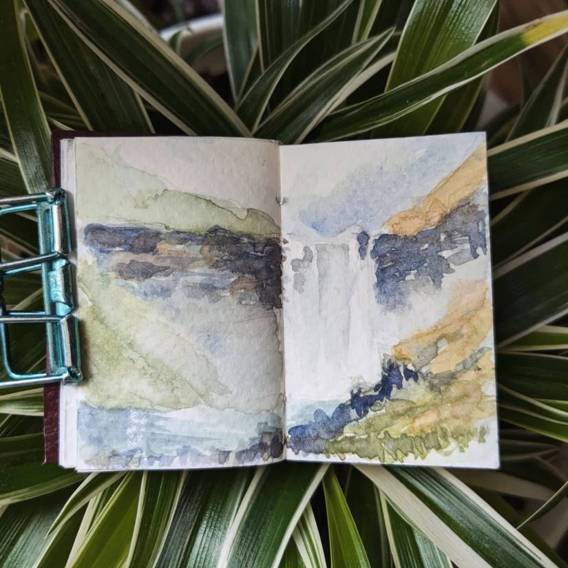 There’s a quiet magic that happens when water touches pigment. As the color spreads, merges, and settles into soft gradients, it reminds me of something far grander, the slow artistry of Earth itself. Every brushstroke and every wash feels like a miniature reenactment of the processes our planet paints its own layers (e.g. volcanic eruption, earthquakes, erosion), shaping mountains, cliffs, and valleys over time. It is for my love of outdoors and nature in general and my profession as an earth scientist that influenced me to paint landscapes as my favorite subject.