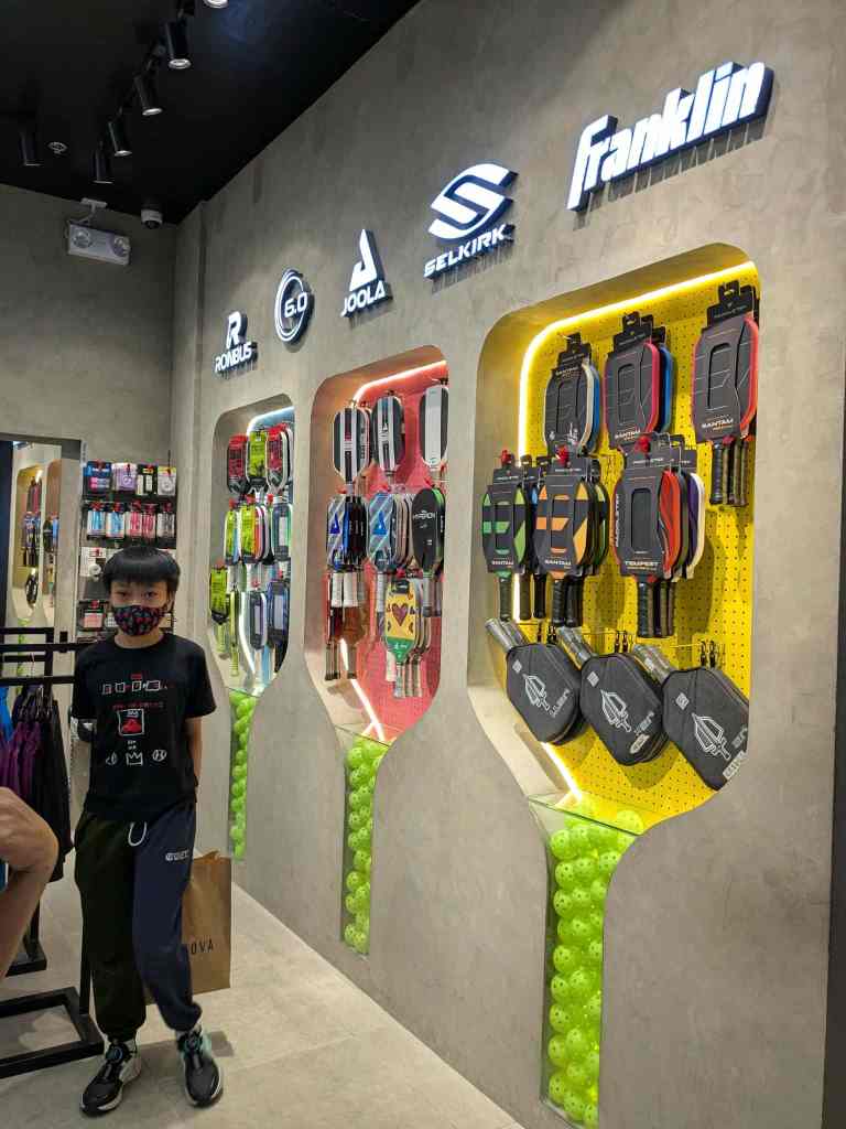 For the pickleball, I got the Joola Graf Champion Paddle from Pickle Lab, SM North EDSA, and generic beginner ones from Lazada for my son. I got a head-heavy racket from Victor in their Lazada store and a light Yonex racket for my son. We re-strung our badminton rackets to higher tension based on our play style.